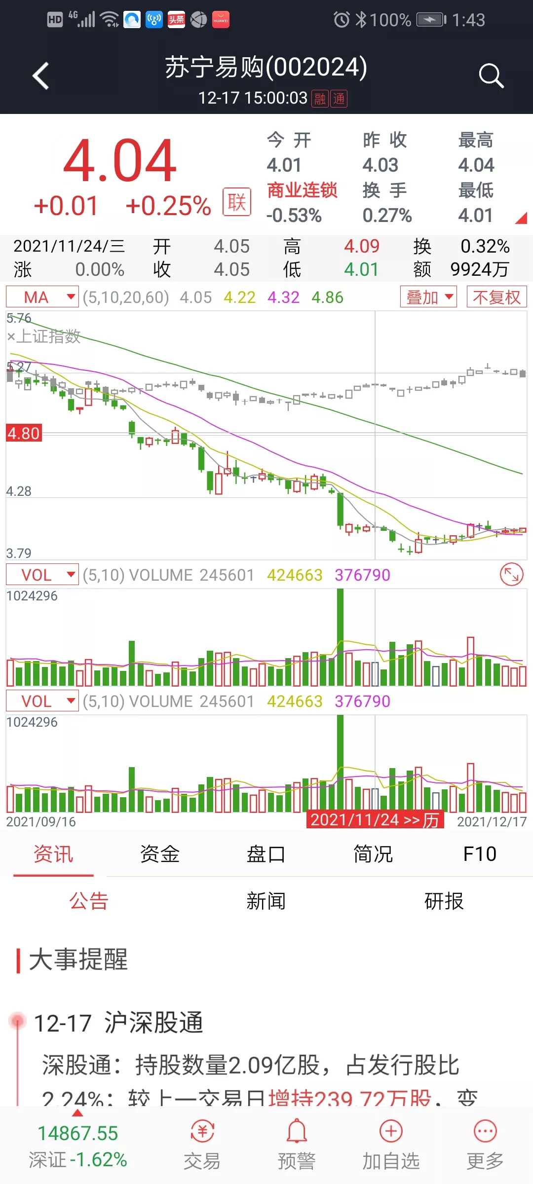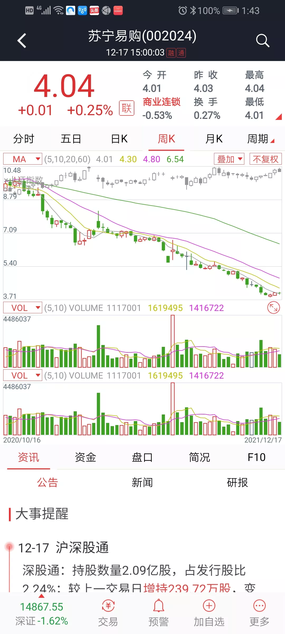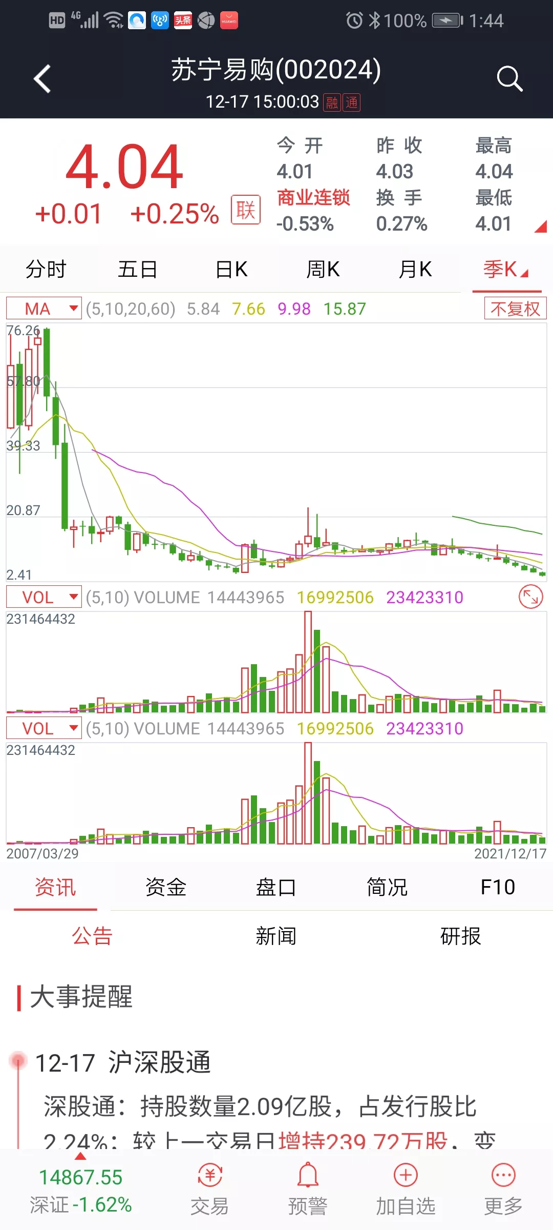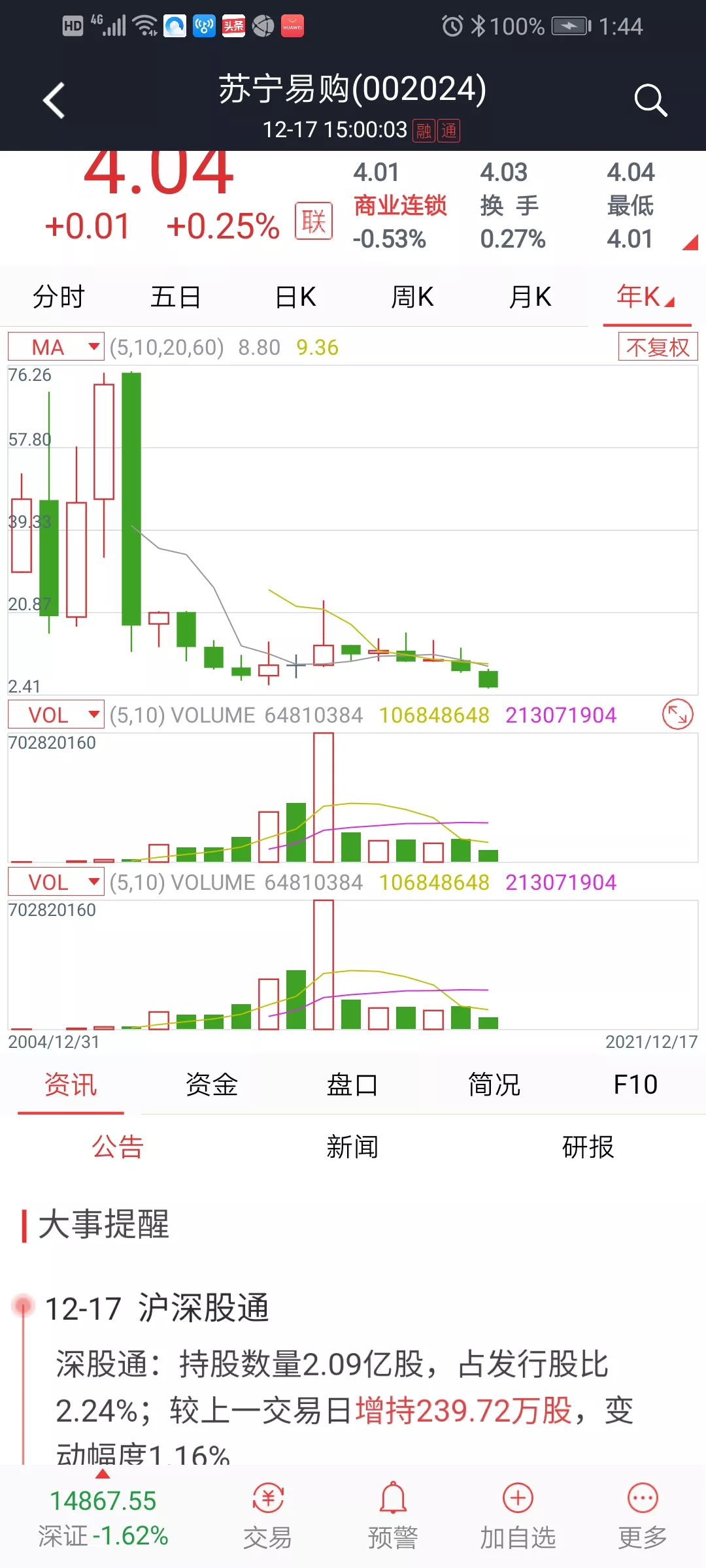 所以还抱有长期持有的打算。因此长期持有出现了亏损。但是当我卖出以后,苏宁电器的盈利能力又慢慢的出现了持续上升。随着盈利上升,股价也逐步升高。