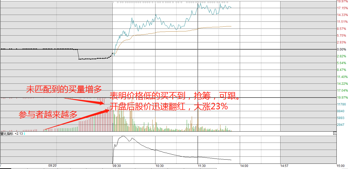 3、看高开幅度。比如说领涨股连续三个涨停,在昨天盘中完成了分歧转一致,那么今天的预期就要大幅高开然后快速封板,走加速,一般情况下高开幅度不得低于6个点,否则就视为低于预期,开盘是弱势的。