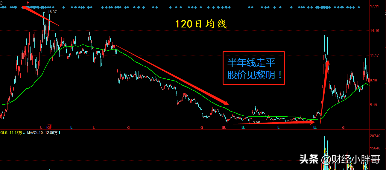 120日线就叫半年线,市场都叫它牛熊线,股价在上方没事,要是跌破半年线就要回调,是牛熊转换的标志,要是半年线走平,行情也不明,股价站在半年线上方股价由跌转涨,只要缩量回调就可以考虑介入。