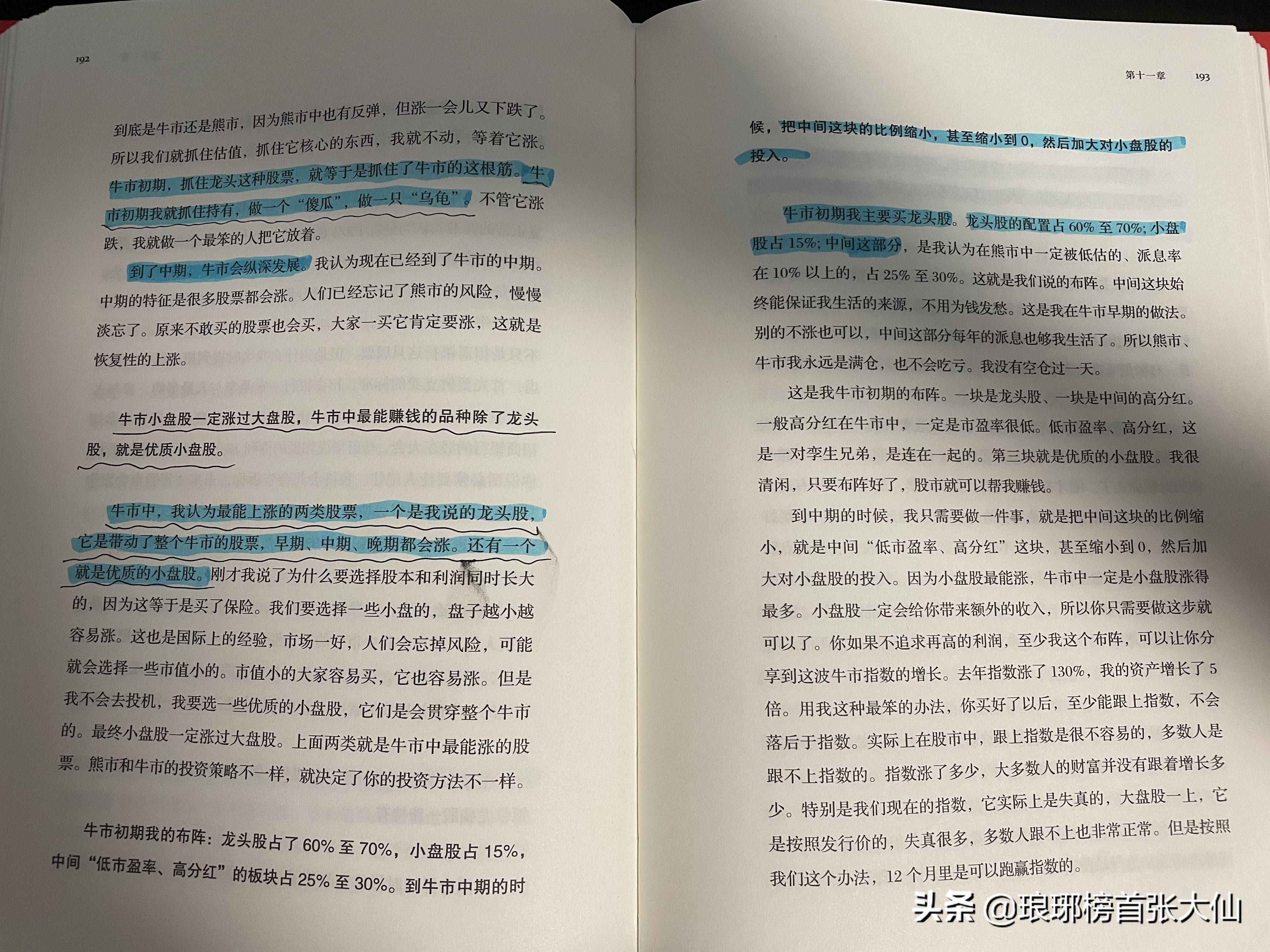 所以,当时的林园说过,他在牛市里的策略非常简单,就是在牛市的初期以60%~70%的仓位布局龙头股,优质小盘股的仓位为15%,低市盈率、高分红的板块占比25%~30%。但是到了牛市的中期,他就会把低市盈率、高分红的比例缩小,然后加大对于优质小盘股的配置。