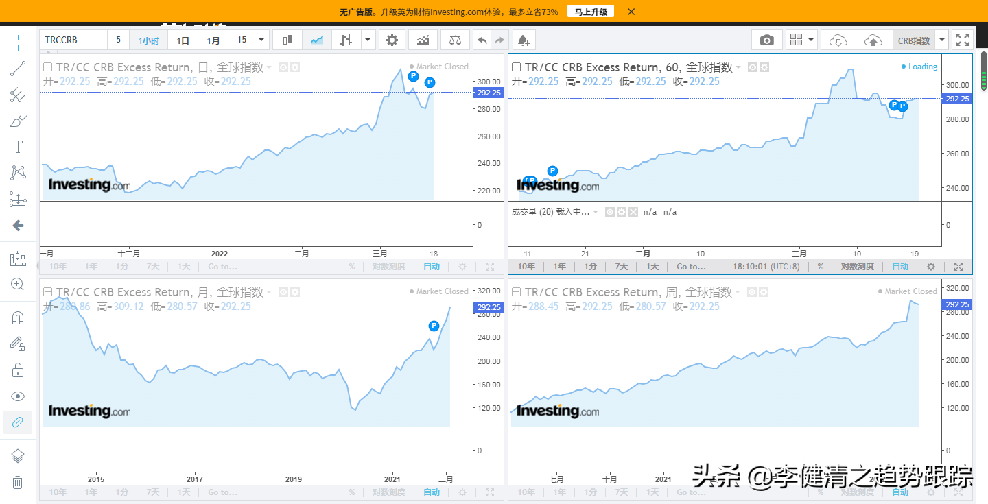 二、CRB指数:周级多,日级多、1小时多。参考外盘各大宗商品品种。