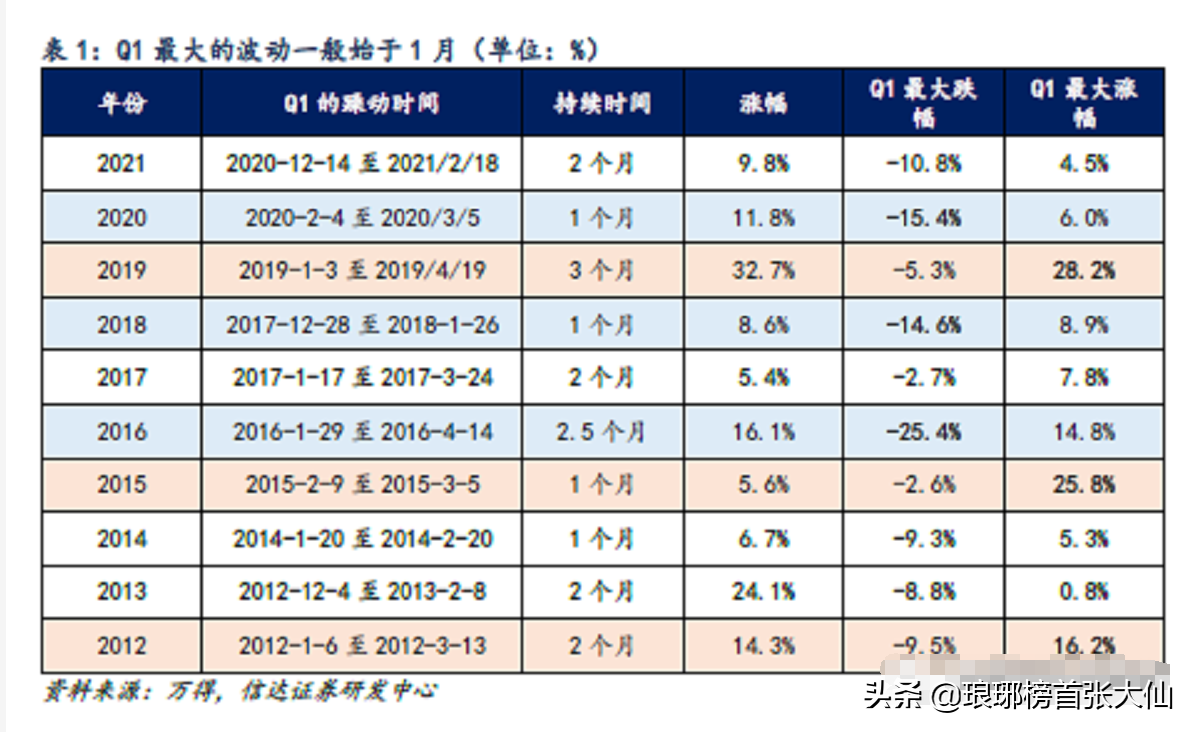 第三,历史上,如果碰上了上年年末有明显政策支持股市(比如货币宽松),那么,整个Q1的涨幅都是不错的。