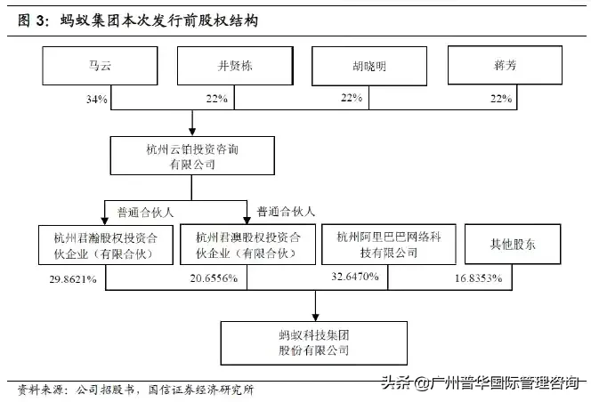 蚂蚁集团前三大股东分别是阿里33%、君瀚有限合伙企业30%和君澳有限合伙企业21%