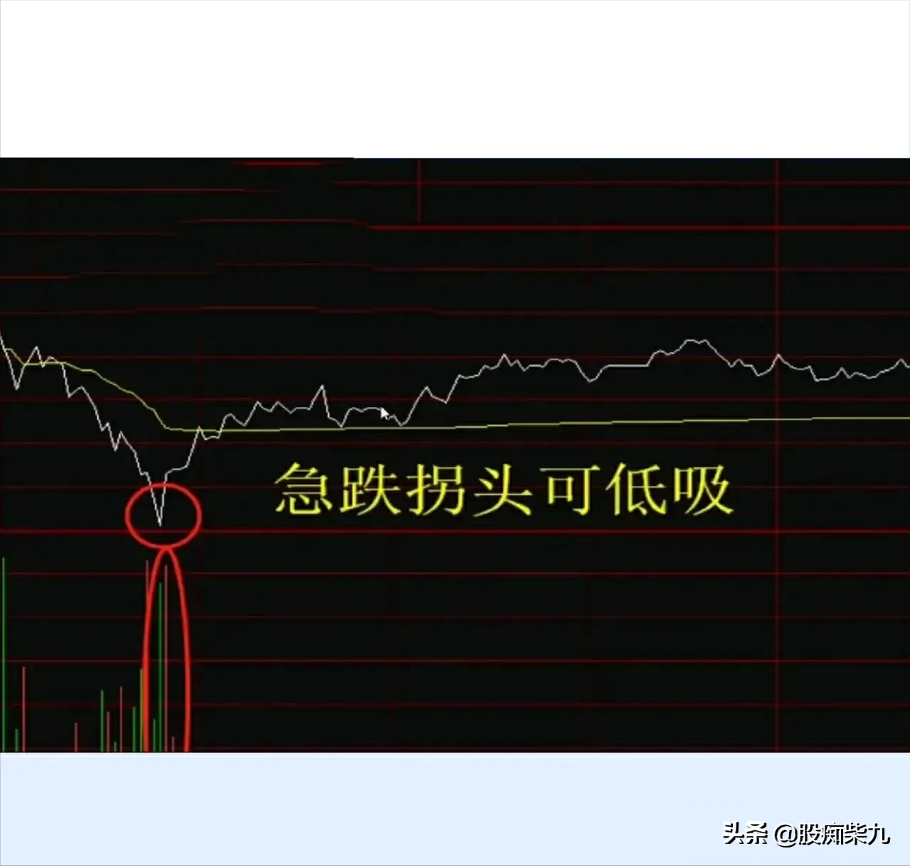 当一只股票急速下行后,又转而向上走,配合成交量变大。这是比较合适的当日低吸点。