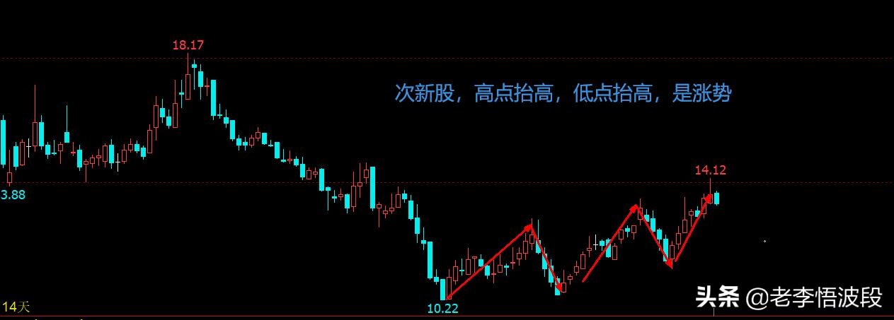 股价趋势:次新股长期趋势不明显,日线高点抬高点、低点抬高点的上涨趋势。