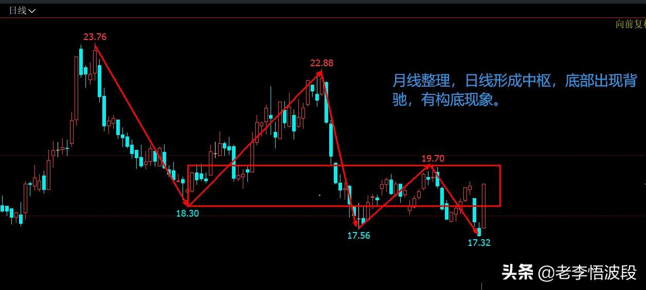 股价趋势:月线低点抬高、高点抬高的上升趋势,调整浪中,日线低位整理中。