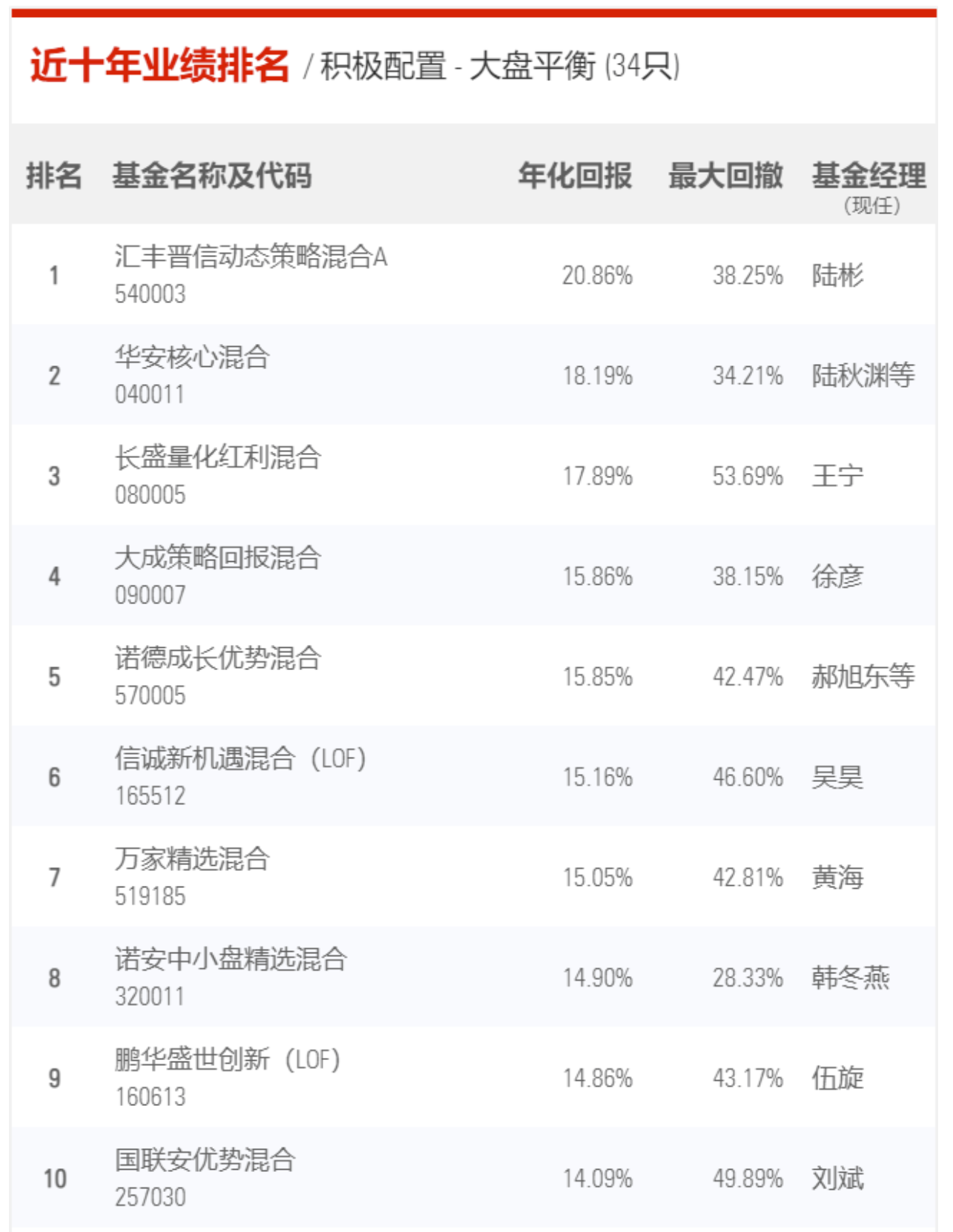 第四名,信达澳银精华配置混合,年化回报16.11%,最大回撤48.22%;