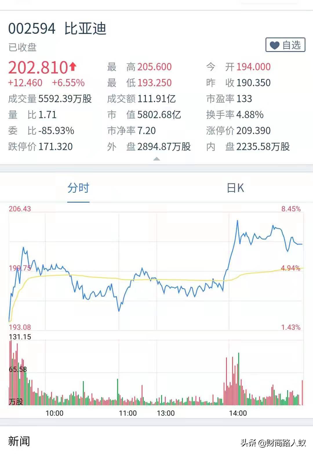 当时的比亚迪不被中国市场的投资人和机构看好,而巴菲特在比亚迪股价8港元的时候,增持了2.25亿股,持有比亚迪接近9%股份,也是巴菲特的伯克希尔哈撒韦公司唯一重仓的一个中国上市公司股票,一年后比亚迪的股价增长都83港元,但巴菲特没有减持,陪跑比亚迪12年,而今天比亚迪的股价超过200元,巴菲特获得了超过25倍回报,在一年一度的巴菲特股东大会上,伯克希尔哈撒韦的持仓报告中比亚迪也是第八大重仓股。