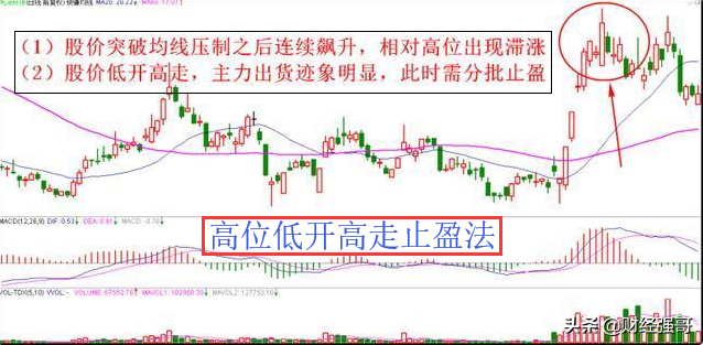 股价在多头上升行情中,均线通常都是跟随股价上升,一旦股价掉头击穿均线,预示着趋势转弱,要立即止盈,保住胜利果实。