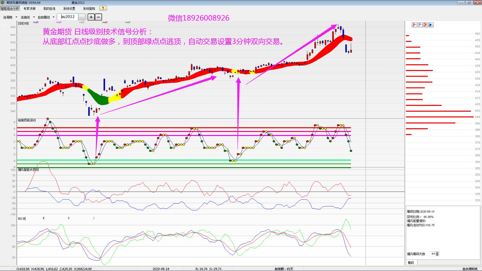 当然。以上操作还有我们黄金日线级别技术信号分析:就是第三章图,我们看到从底部红点点抄底做多,到顶部绿点点逃顶,那么自动交易设置3分钟双向,多空通吃。在日线级别信号分析完,让我们知道自动软件在底部红点点时偏重的抄底做多,那么到顶部绿点点时,偏重的是逢高做空。这样分析起来一目了解,做到心中有底,操作不慌。