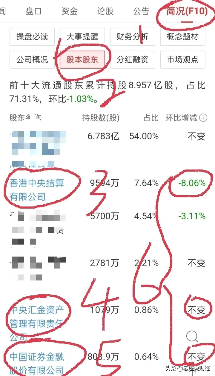 3这里我们需要重点注意的是要看持股的前10大股东里面有没有,香港中央结算公司,中央汇金资产管理有限公司,和中国证券金融股份有限公司这三家公司,如果有一家说明这家公司还不错,有两家说明很好,有三家那就公认的非常优秀了。