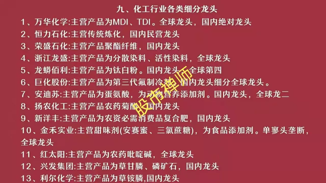 行业龙头上市公司作为本行业最具代表性和成长性的企业,他在一个行业的市场份额是非常高的,在行业内具有举足重轻的地位,其价值远远超过同行业其他企业。因此,抓住行业龙头,也就抓住了行业未来的大牛股。