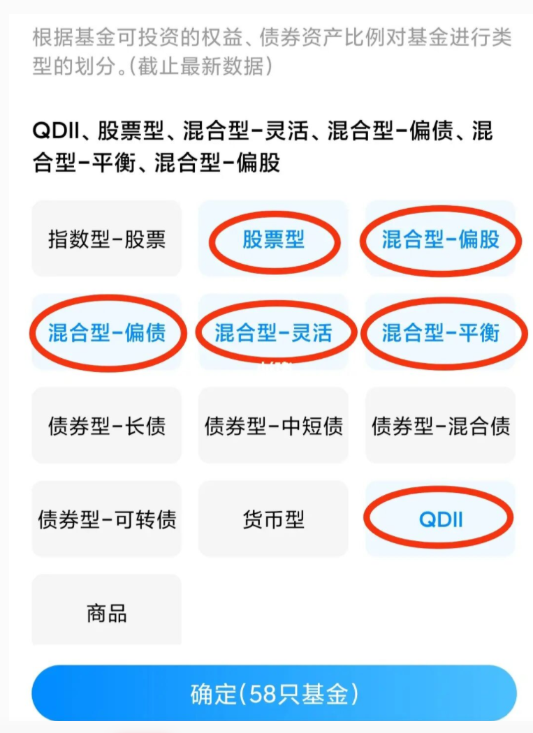 2)类型:Gu票型、混合型、QDII,黑马指的是主动管理型权益经理,所以指数、债Q这些不用勾选