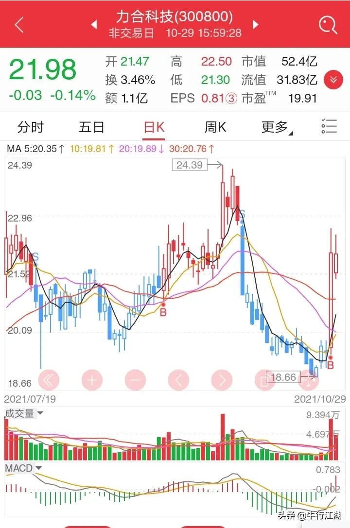 3、300800力合科技,周五给出22.83的压力位,盘中最高22.50,未过周四高点。显然主力对整体走势已经安排了,既然上面有压力位,那就在20.33的技术位等等看,观察一周其后期走势提前先做个标记再说,高了就不追,低了看机会再说是否低吸。只要是其业绩面不错,属于价值投资标地个股之一。