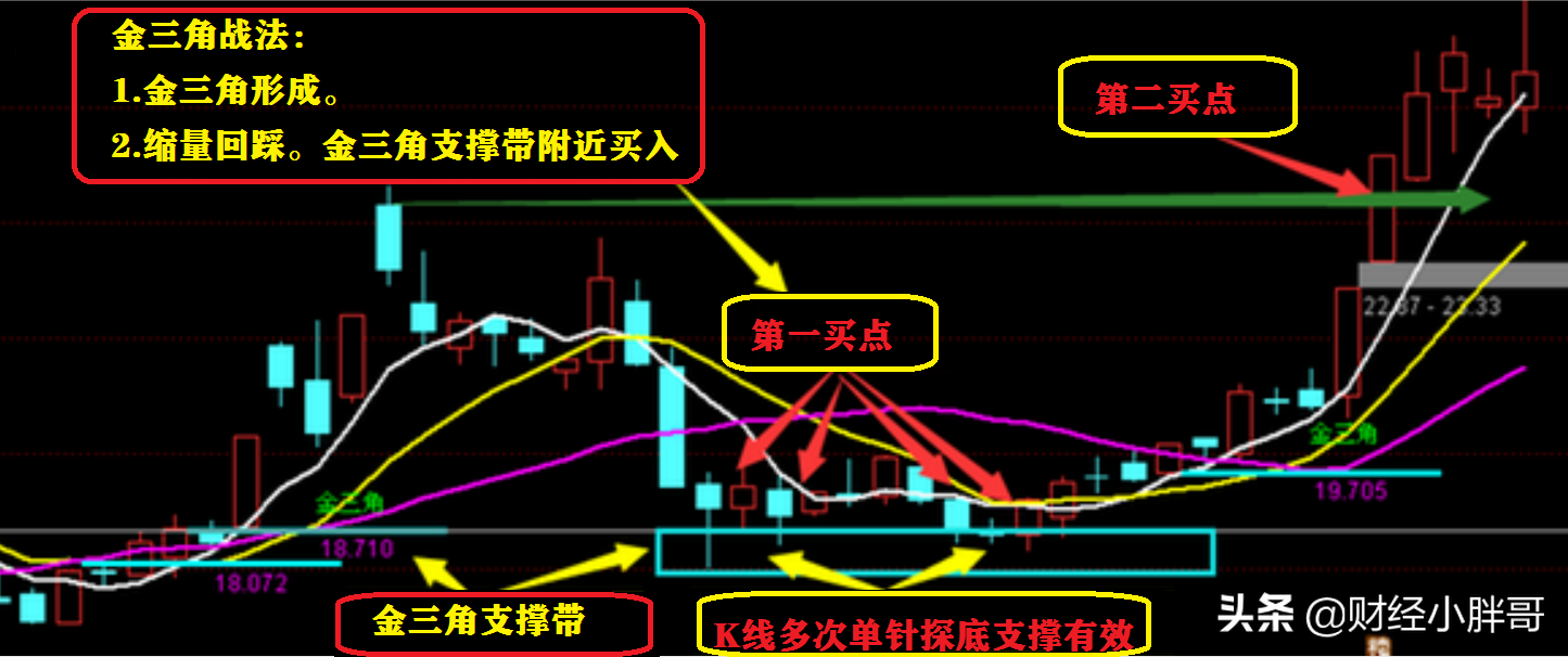 印象深刻的就是他用“金三角”形态在炒股大赛中抓了一只大牛,他分享给我后我也用了很长一段时间,挺简单的,并且胜率还挺高。遇到“金三角”形态往往蕴藏了很大的机会,今天给大家讲讲。