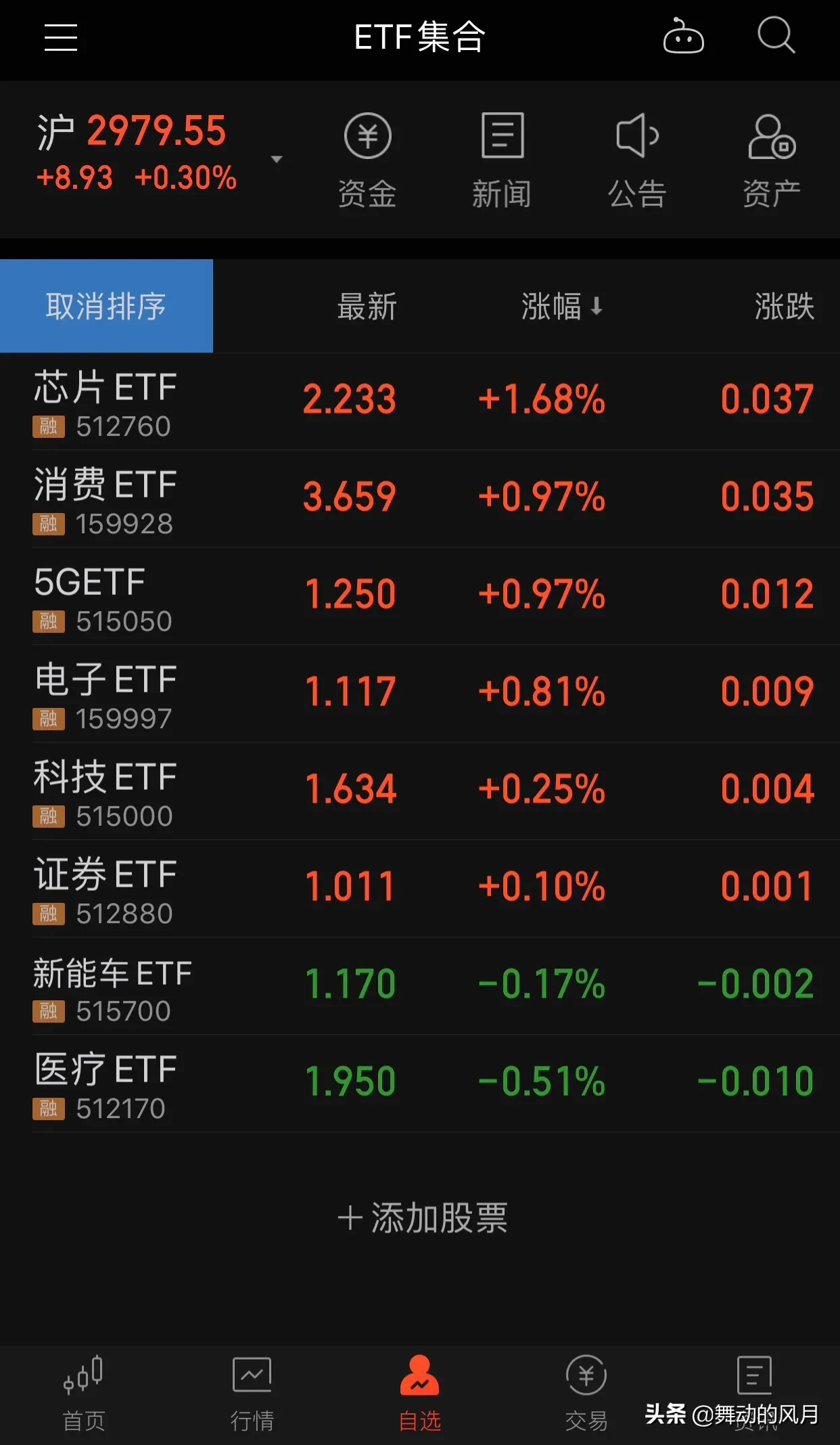 2)板块:选择相对主流的板块,如医药医疗、白酒、科技和证券等板块;