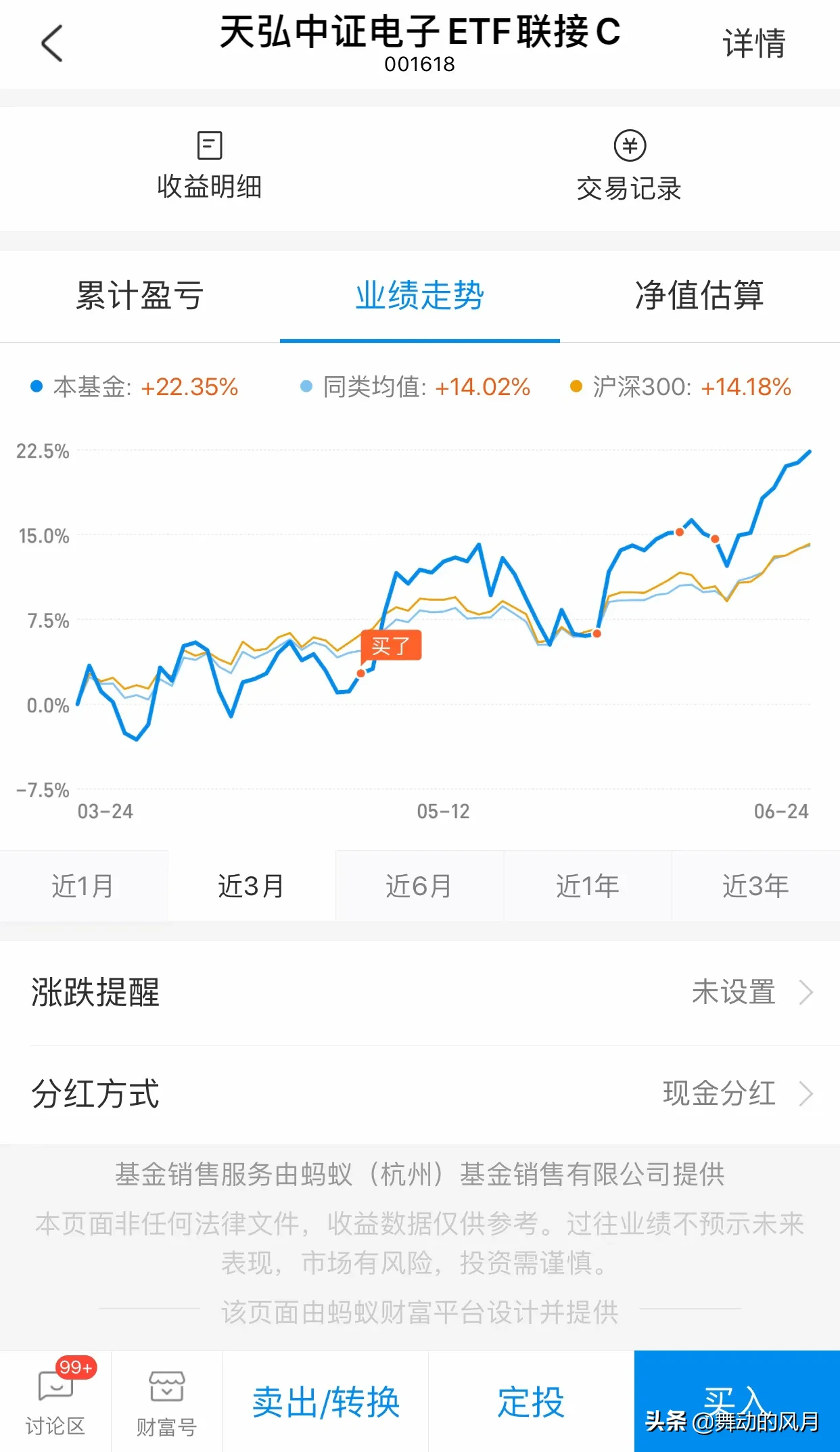 2)场外ETF基金:第三方平台,如支付宝、天天基金等,买入手续费一般一折,7天内卖出手续费1.5%,7天后卖出较便宜,适合长期持有;