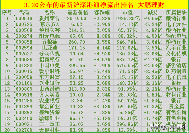 重磅消息!3月20日刚刚公布的沪深港通净流出排行榜,看看有没有你的持仓股: