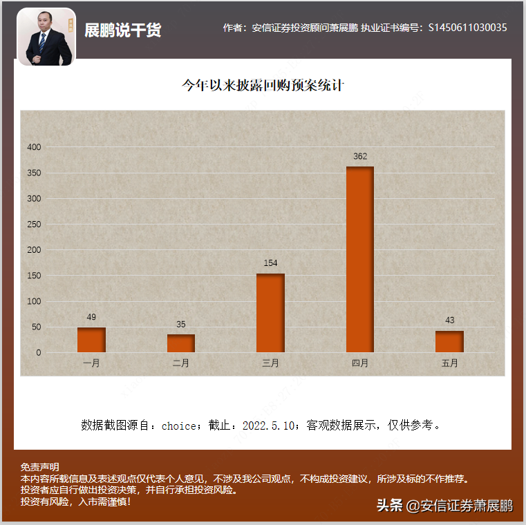 统计了一下今年以来披露回购预案的公司合计已有643家,呈现逐步增长的态势,四月已经达到362家,五月五个交易日已经接近一月全月的水平。其中有362家公司回购用于股权激励,占比超过一半。