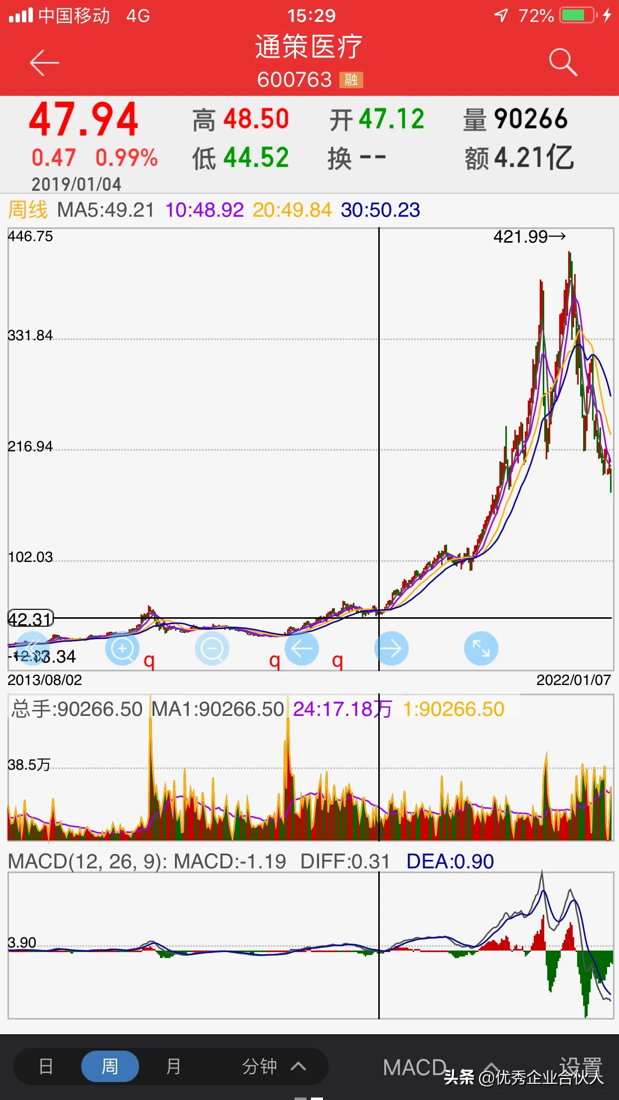 最近朋友圈爆出某人热炒通策医疗爆仓破产的消息,因为以前关注过通策,评价是还不错的股票,忍不住好奇翻了翻通策医疗: