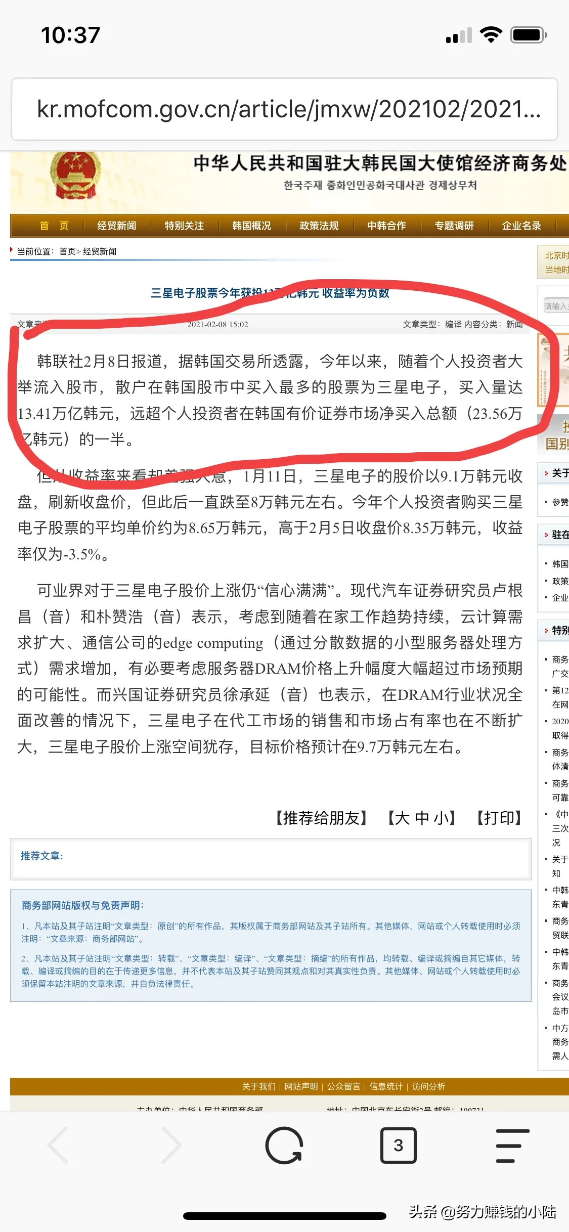 1.今年以来,韩国散户每花100块钱买股票,就有57块钱花在了三星电子上,哪怕股票还是跌的。不过三星2020年利润有超过500亿美元,真厉害。