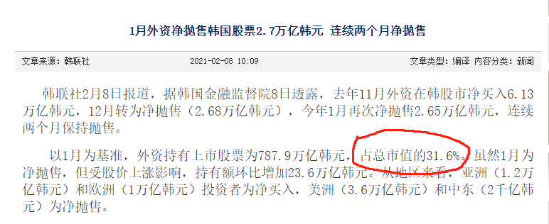 2.目前,外资占有韩国上市公司总市值的三成,而A股仅有4%的比例。可以预见,还有很大的提升空间,不如我们先把好股票都买了,让外资来抬轿子[思考]
