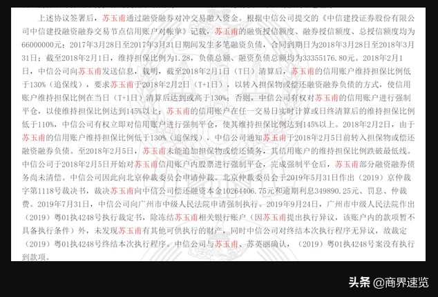 根据北京仲裁委员会于2019年5月31日作出的裁决,苏玉甫仍需向中信建投偿还融资本金1026.4万元和逾期利息35万元。