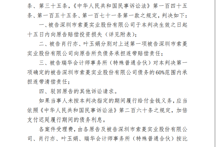 近日,谢保平律师金融证券团队代理的一批共23位索菱股份投资者也收到了深圳中院胜诉判决书。自索菱股份公告遭证监会立案调查起,谢保平律师团队就收到大量投资者索赔登记,在证监会对索菱股份下发处罚决定书后,便正式启动了投资者索赔诉讼,目前已代理了多批投资者索赔立案。谢保平律师表示,凡2017年4月25日至2019年4月29日间买入002766*ST索菱,且在2019年4月30日(含当日)后卖出或继续持有者(最终以法院的认定结果为准),亏损金额大于2万元的投资者可报名登记索赔。法院遵循“不告不理”的原则,符合上述索赔条件的受损普通投资者和机构投资者可股保平网了解最新资讯,以免错过索赔机会。