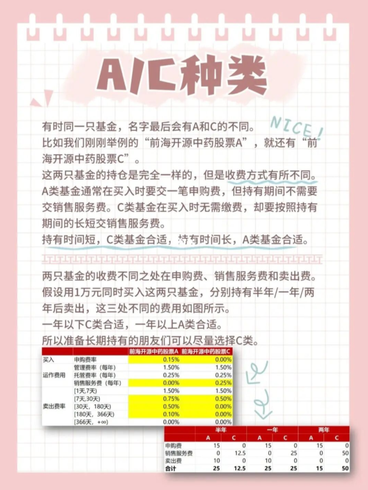 持有时间短,C类基金合适,持有时间长,A类基金合适。