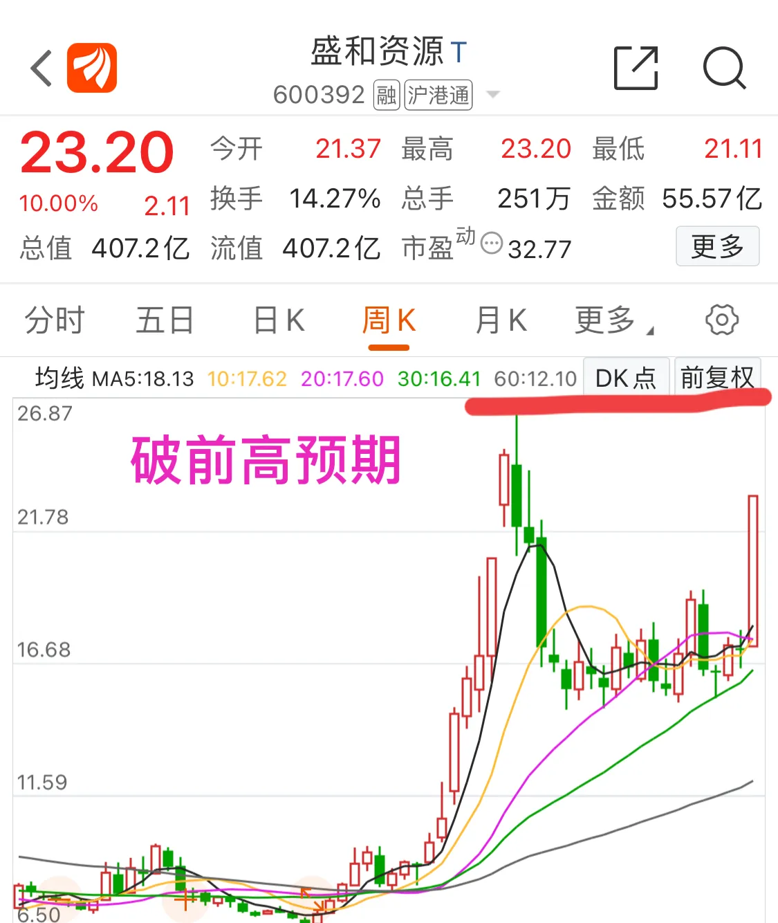 2.盛和资源:趋势股,从图形上看有仙人指路味道,这里要格局大一点,大概率破前高,关注参与机会。