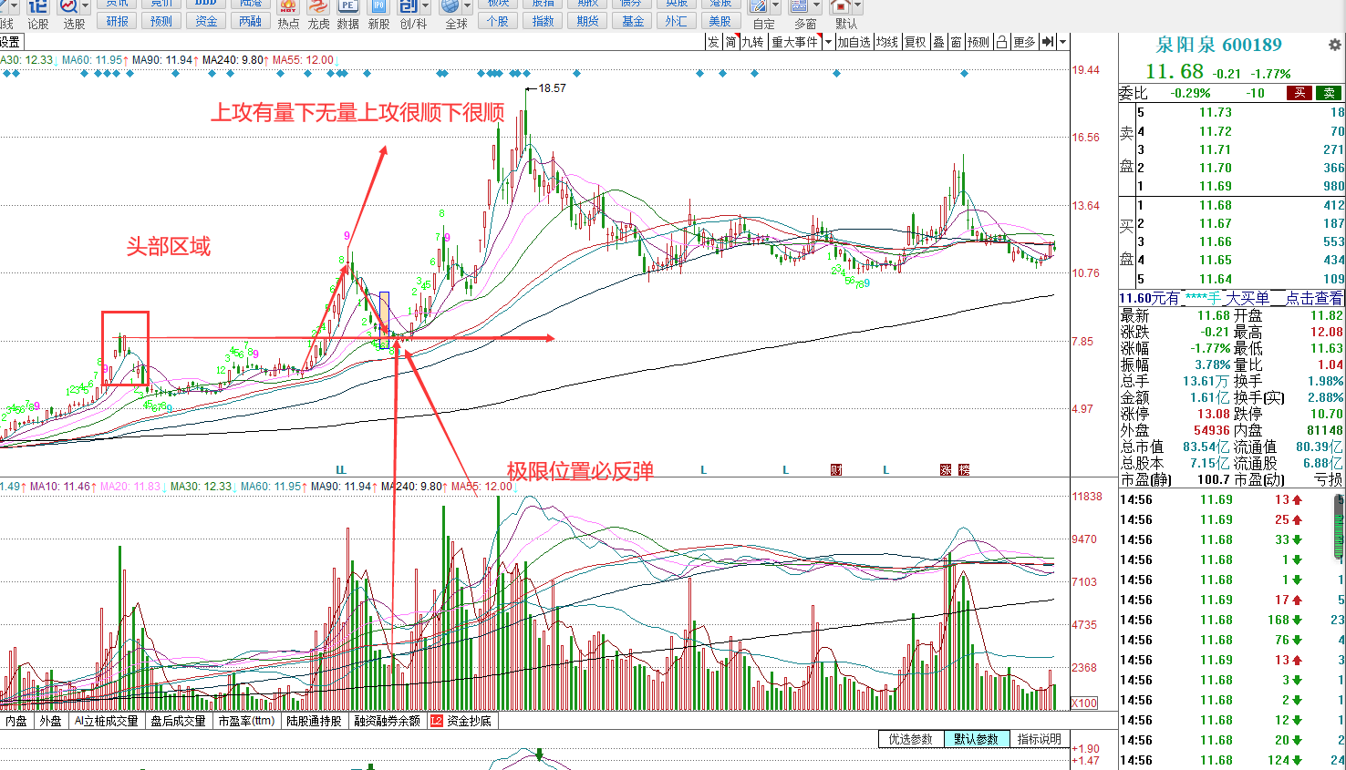 上攻很顺下跌很顺,啥意思就是你这个股票上攻的过程要很顺,下跌过程也很顺畅这就构成了龙头的回撤有效支撑性质,这也的参与来说也就构建了中间反复盘没用,另外上攻有量下跌无量,它是告诉我们资金再下跌的过程没用走,找到结构点是告诉我们再跌主力就要亏钱了