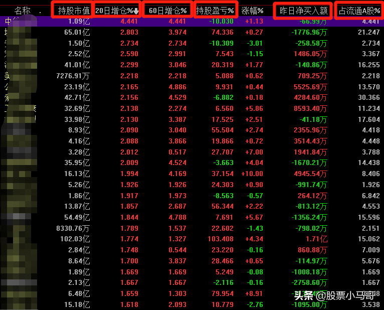 3:把进度条往后拉,你可以看到北向资金【持股总市值】【加仓】【持股成本】【浮动盈亏】排名等数据,一眼看得明明白白!