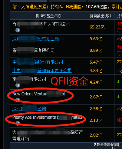 1:QFII资金,股东榜上显示机构的名字,都是英文字母的。