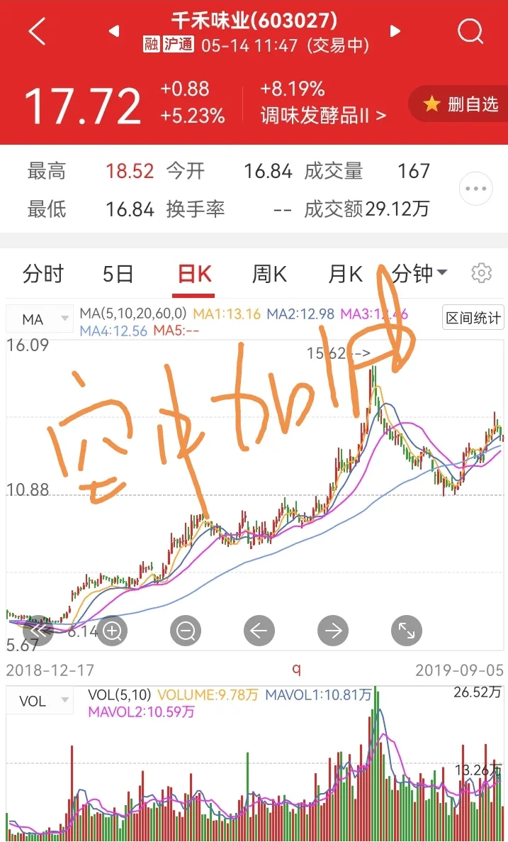 划重点:从哪些方面来判断呢?给你一块敲门砖:根据多年经验判断,个股主升浪拉升必然[加油]突破季线[加油],必然站在中长期均线上方。这是必要条件,没有在长期均线下方走主升浪的。如果你要找主升浪,可以用这一条排除法,看起来因果倒置,其实在股市里讲的是概率,没有绝对因果论。因循这一点,能有两成把握。站在中长均线上方后的主升浪走势可以是跌破短期均线的挖坑假摔再升,也可以是中短均线糅合之后的空中加油其次要看成交量,主升浪之前必然有个量能积累过程,无论是在季线下方还是突破之后的缓坡,都要有一次或几次放大量现象。然后再考虑题材及市场热点,又能增加一两成,也就是说,抓主升浪总共有五成把握。很低吧,十次中五次,已经相当高了。要清楚抓主升浪的难度比抓大涨趋势要要难得多。
