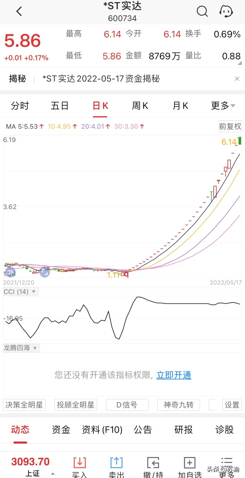 这只我们推荐时还没有被ST,但从二月份的1.29元,一路上涨到6.14元,三个月翻了5倍多,俯瞰两市,谁与争雄?每天不是涨停就是在涨停的路上,期间被多次停牌问询,但每次出来后,依然我行我素,在涨停的路上狂奔,就问你服不服?(见下图)