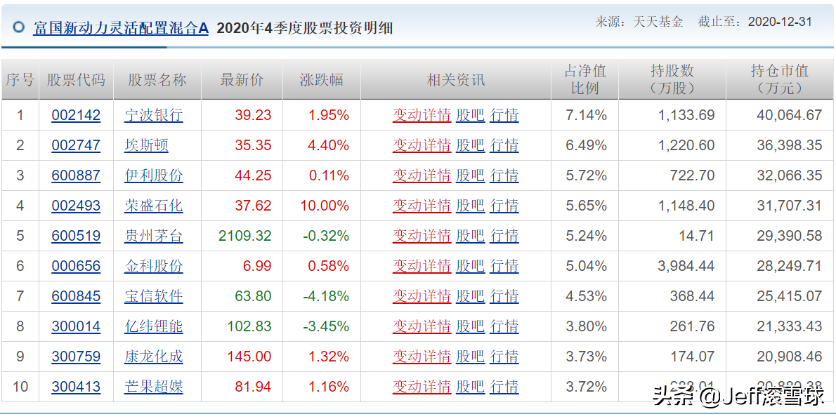 我们来看一下它的第四季度更新持仓,前十大持仓变成了宁波很行、埃斯顿、伊利股份、荣盛石化、贵州茅台、金科股份。宝信软件、亿纬锂能、康龙化成和芒果超媒。这里要画一个重点了,我发现第四季度很多基金都增配了宁波很行,所以就去看了看它的业绩。