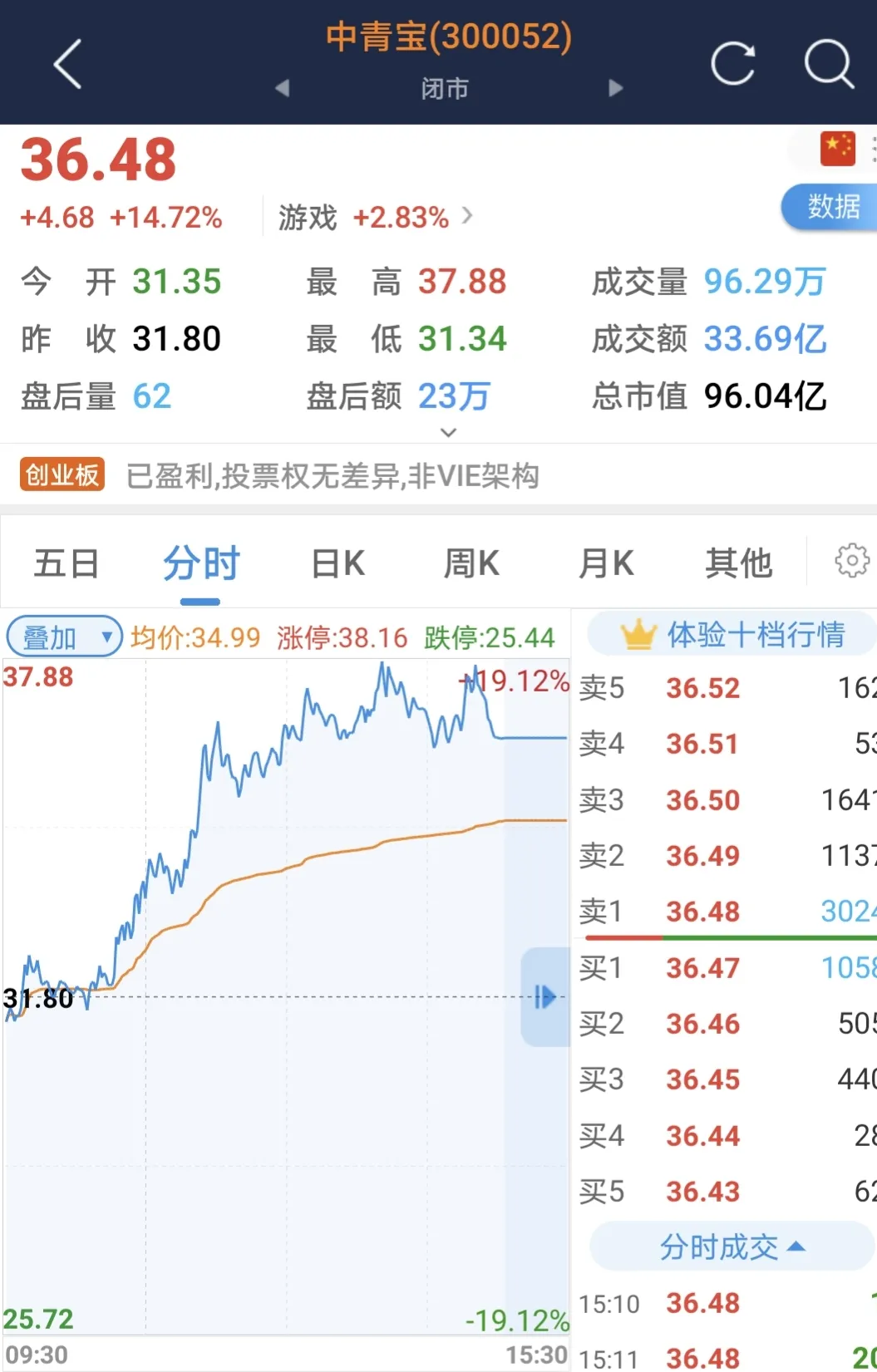 买掉了启明信息,资金不能闲着啊,就买最近很的元宇宙概念吧!结果二选一,还是选错了,在12.09元红盘买进佳创视信800股,而是放弃31.60元的中青宝,后中青宝涨到37.88元。