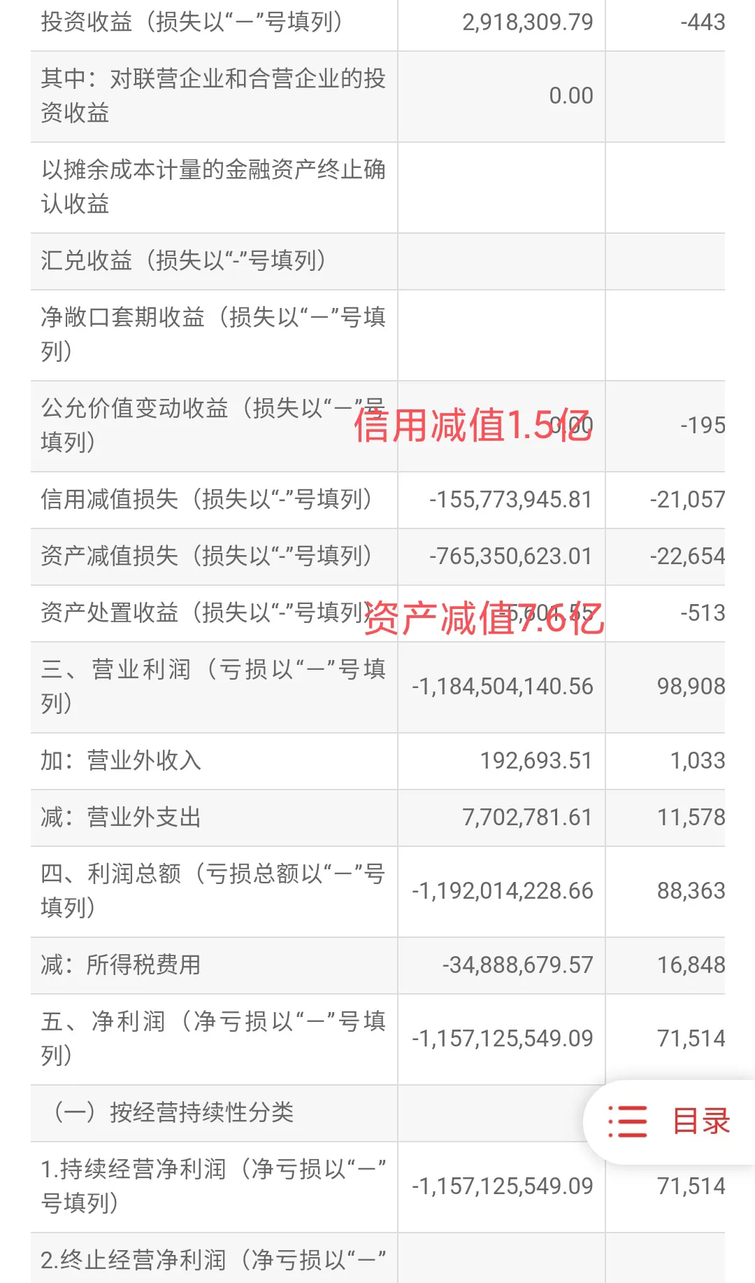 3.带着这样的疑问,我去认真查阅了该股的第三季度财报,终于发现了原因,原来这只股票正常经营的亏损不到3亿,主要的亏损是因为商誉减值1.5亿和资产减值7.6亿造成的。而之所以资产减值这么多,是因为当初投资了10亿的一家公司因为经营不善,最后不得不100万出售(这也太败家了吧!)而造成的减值。