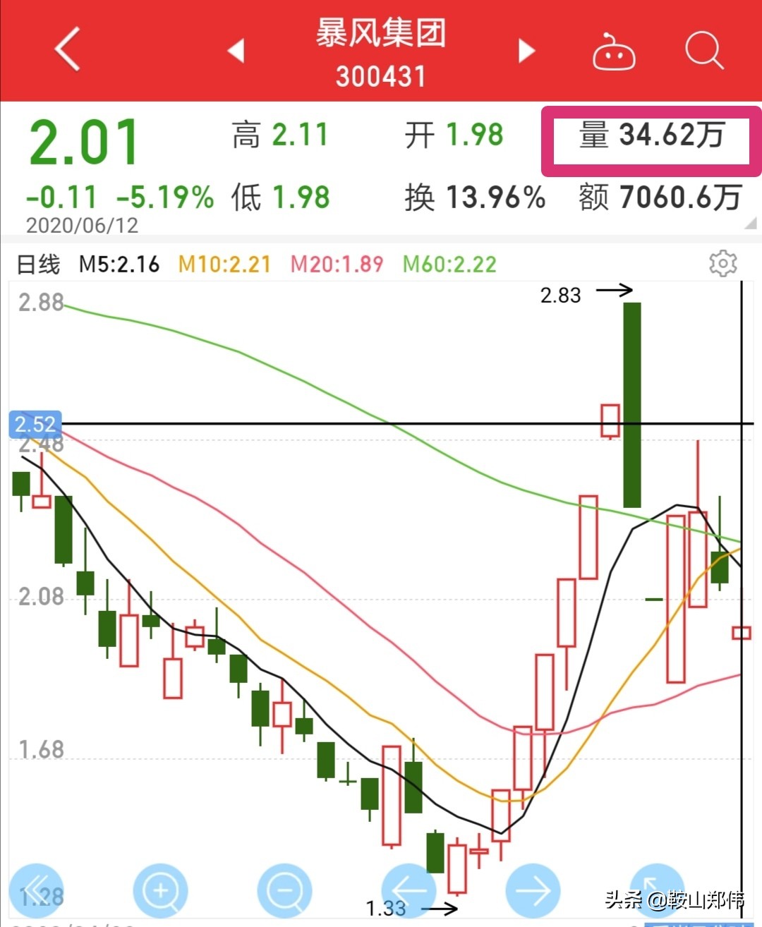 2020年6月12日暴风集团成交量为34.62万(见图2),差距太大,无法满足退市条件!