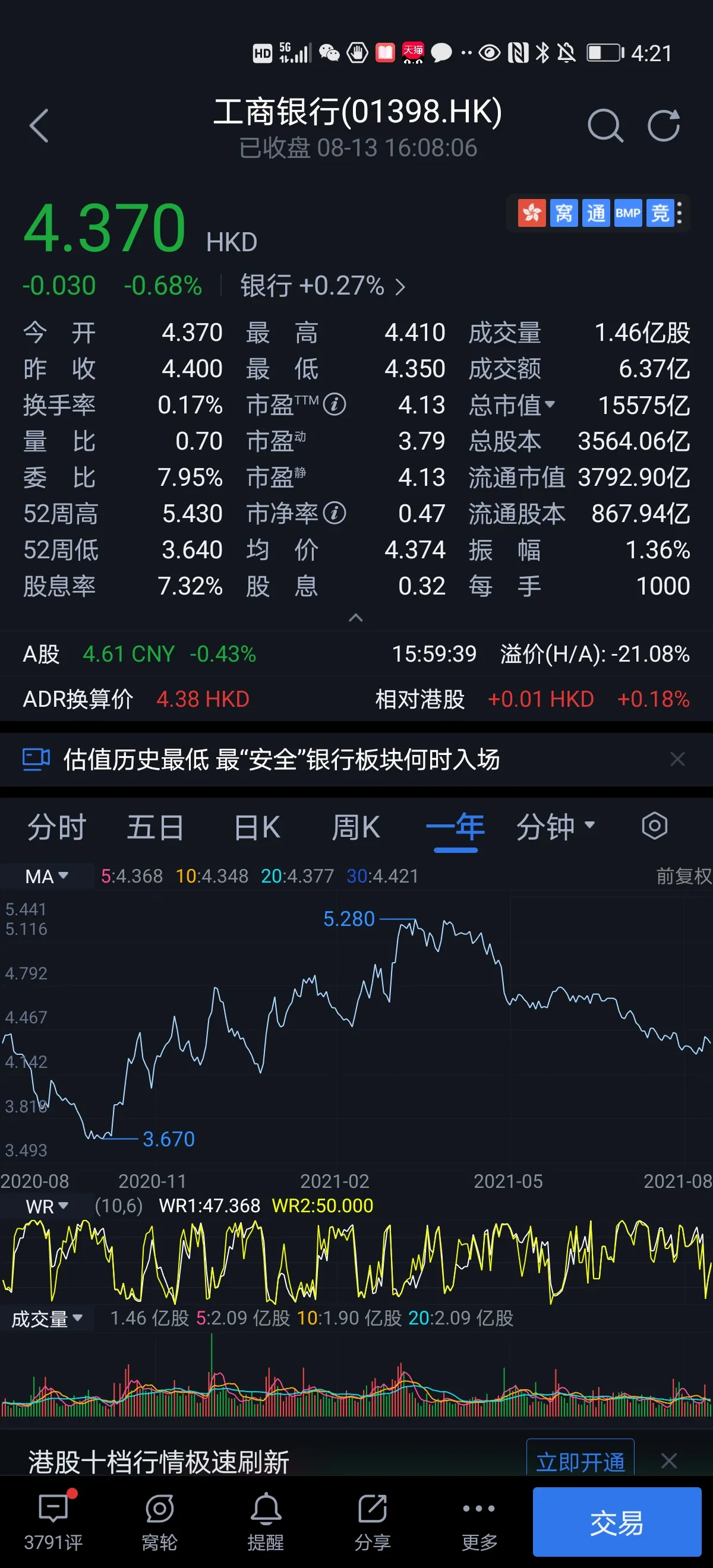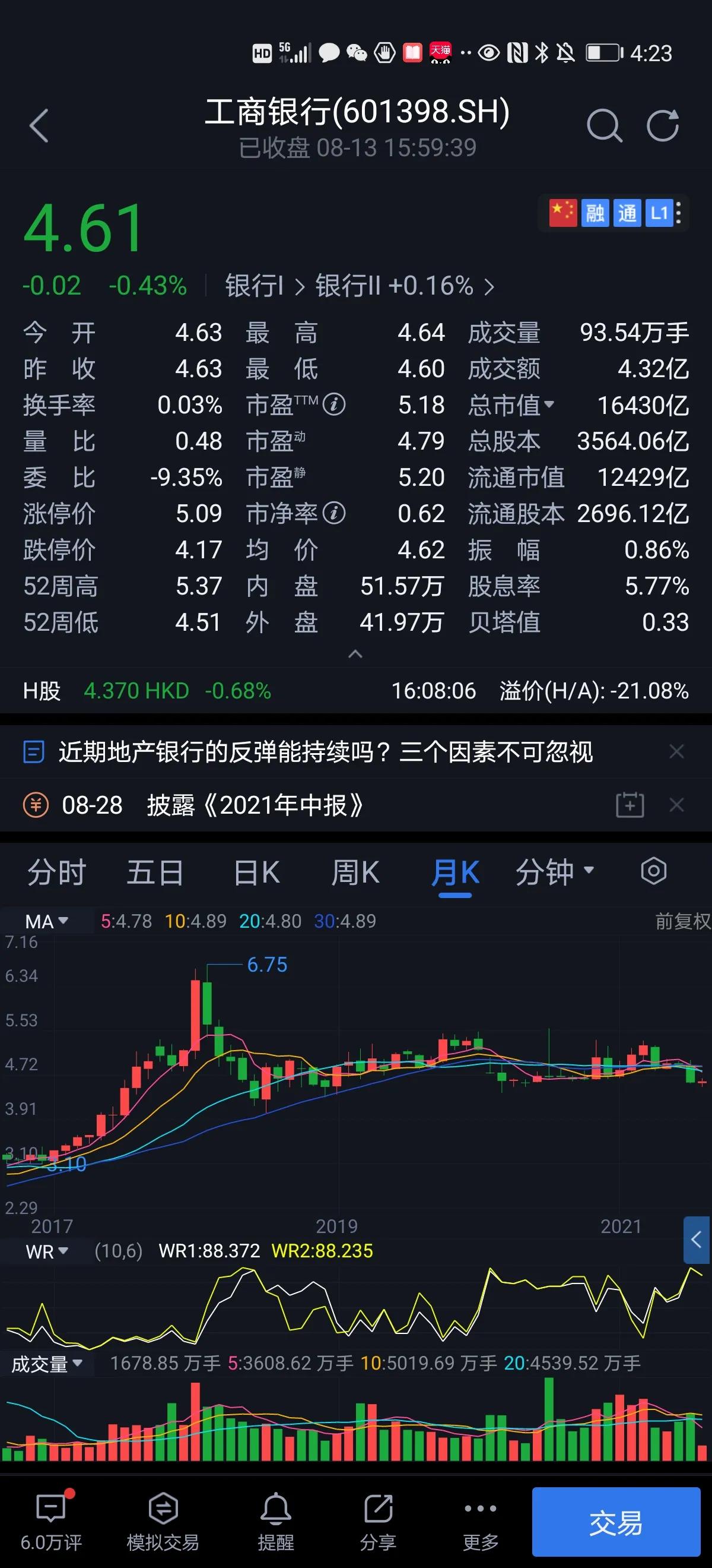 二是长期看股价上涨幅度也不少。招行A股从16年底到现在,不到5年,股价上涨了3倍。工行A股同期上涨了45%。两家银行H股与A股涨幅类似。