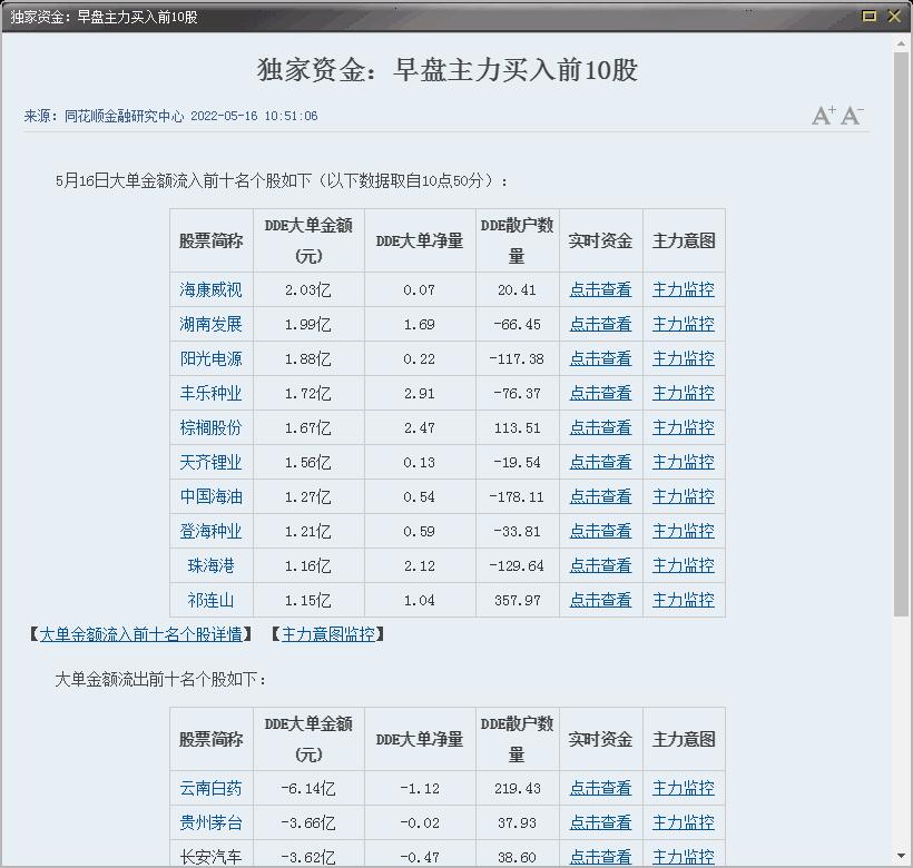 盘中出来的消息,主力买进和卖出的前十个股票,其实,我平时根本连看都不看这种消息的