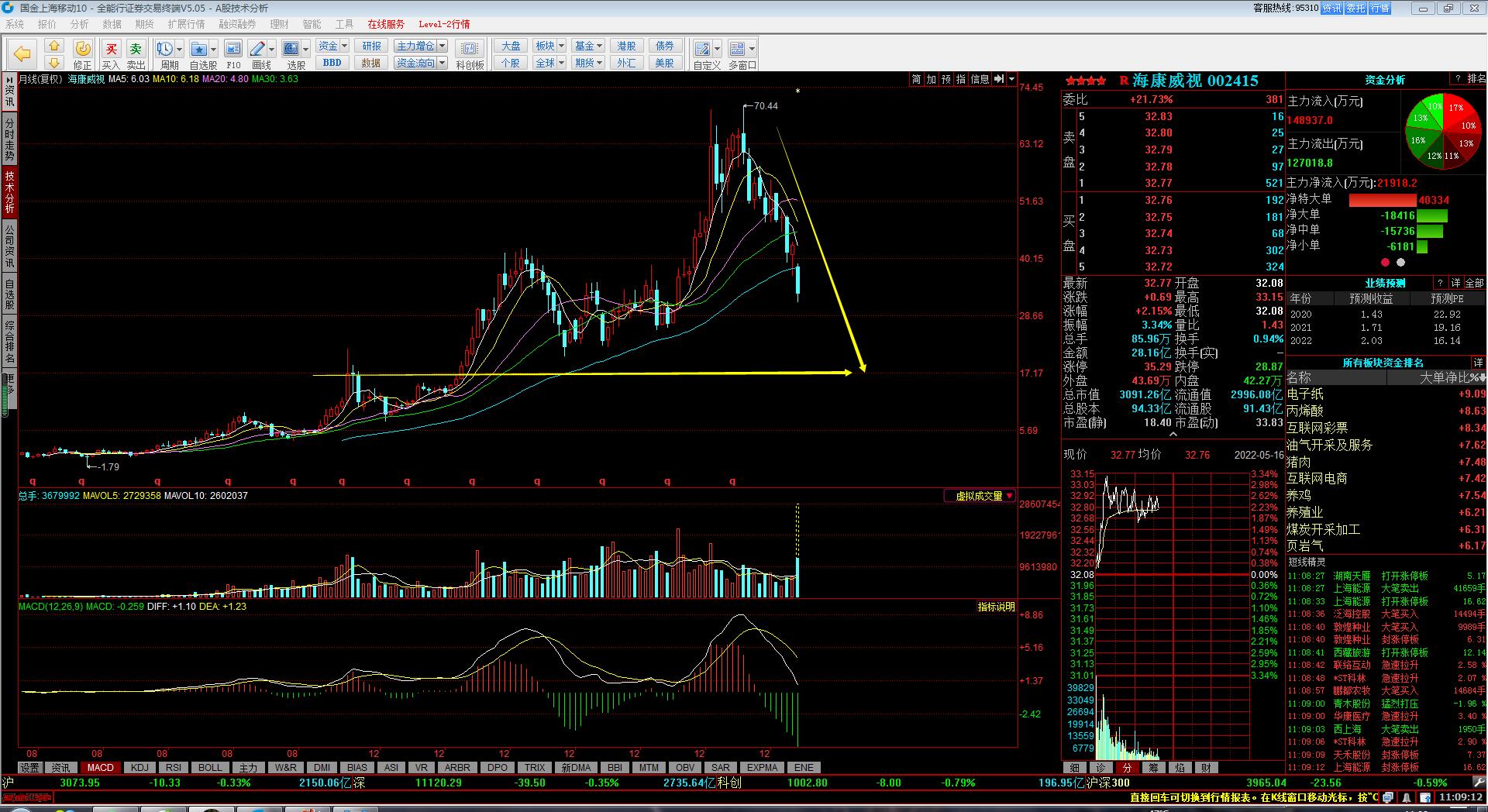 海康威视 ,跌势正酣,23左右,会有所反弹...然后继续下跌;到17也不见得是底儿,底儿在哪里,过2年以后再看再说吧,17都不见得能是真正的底儿