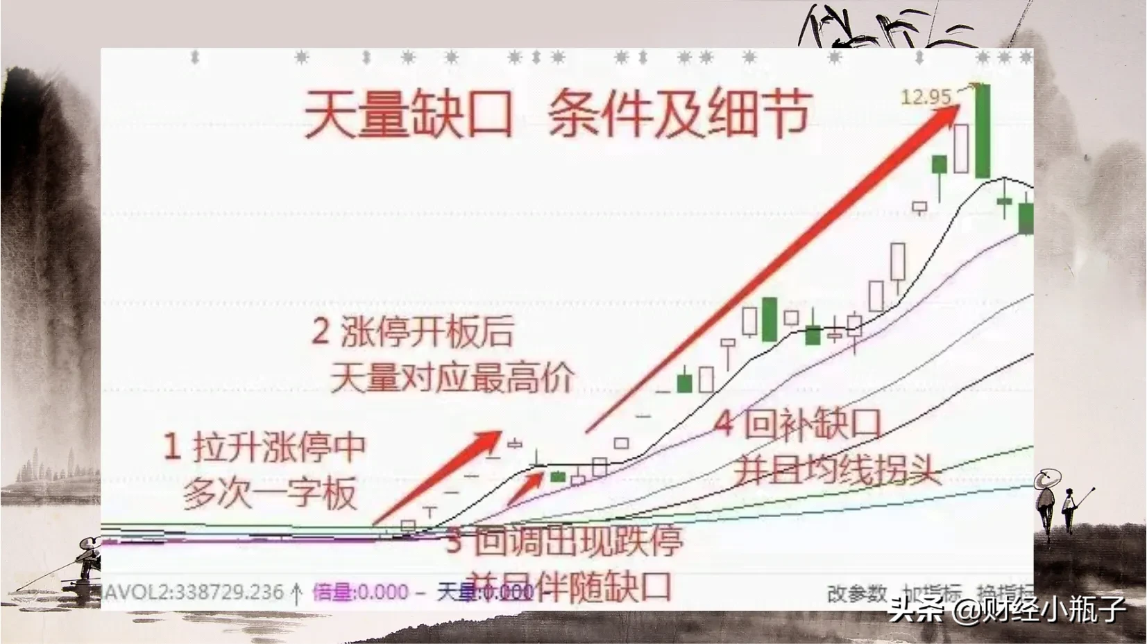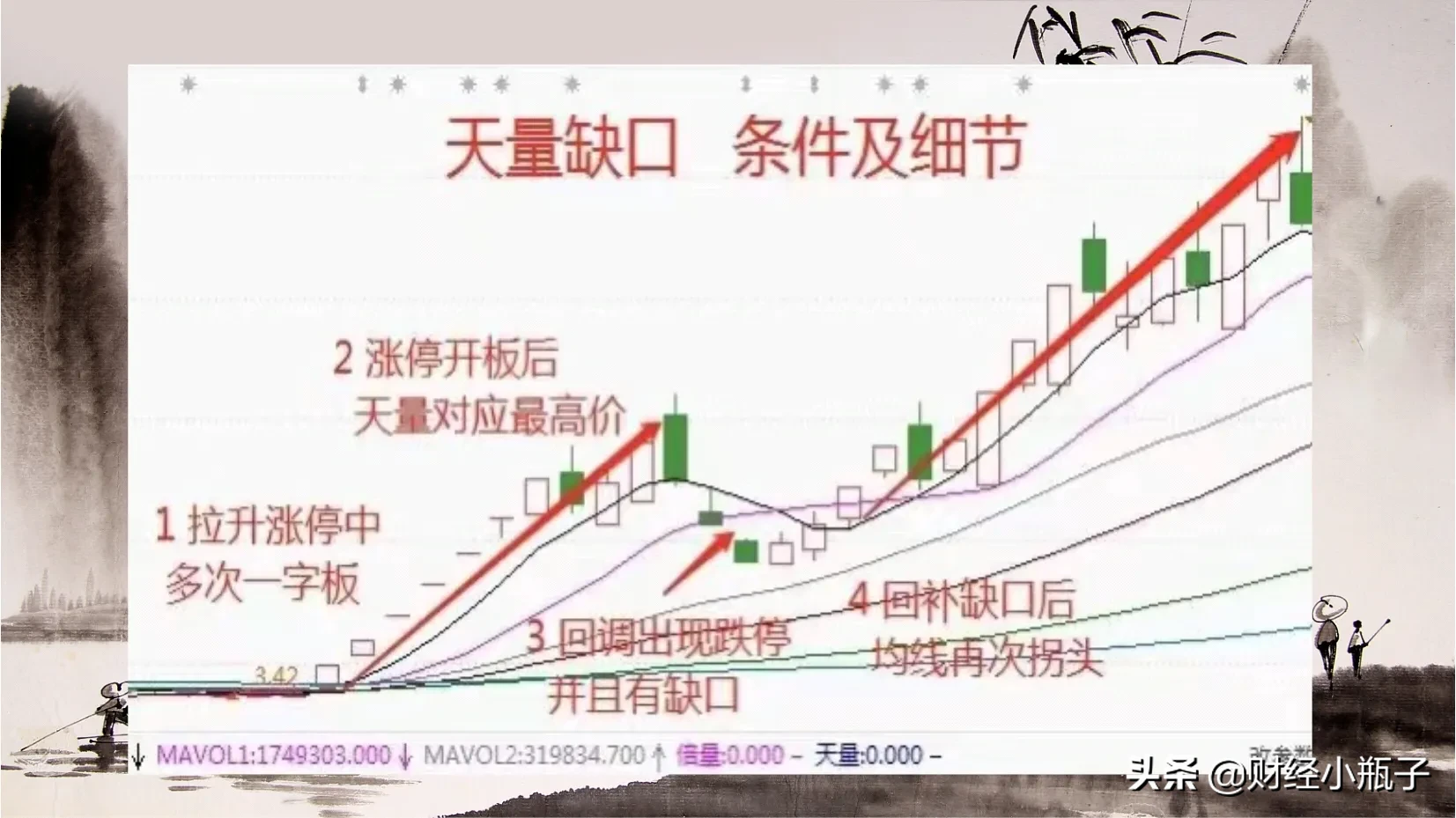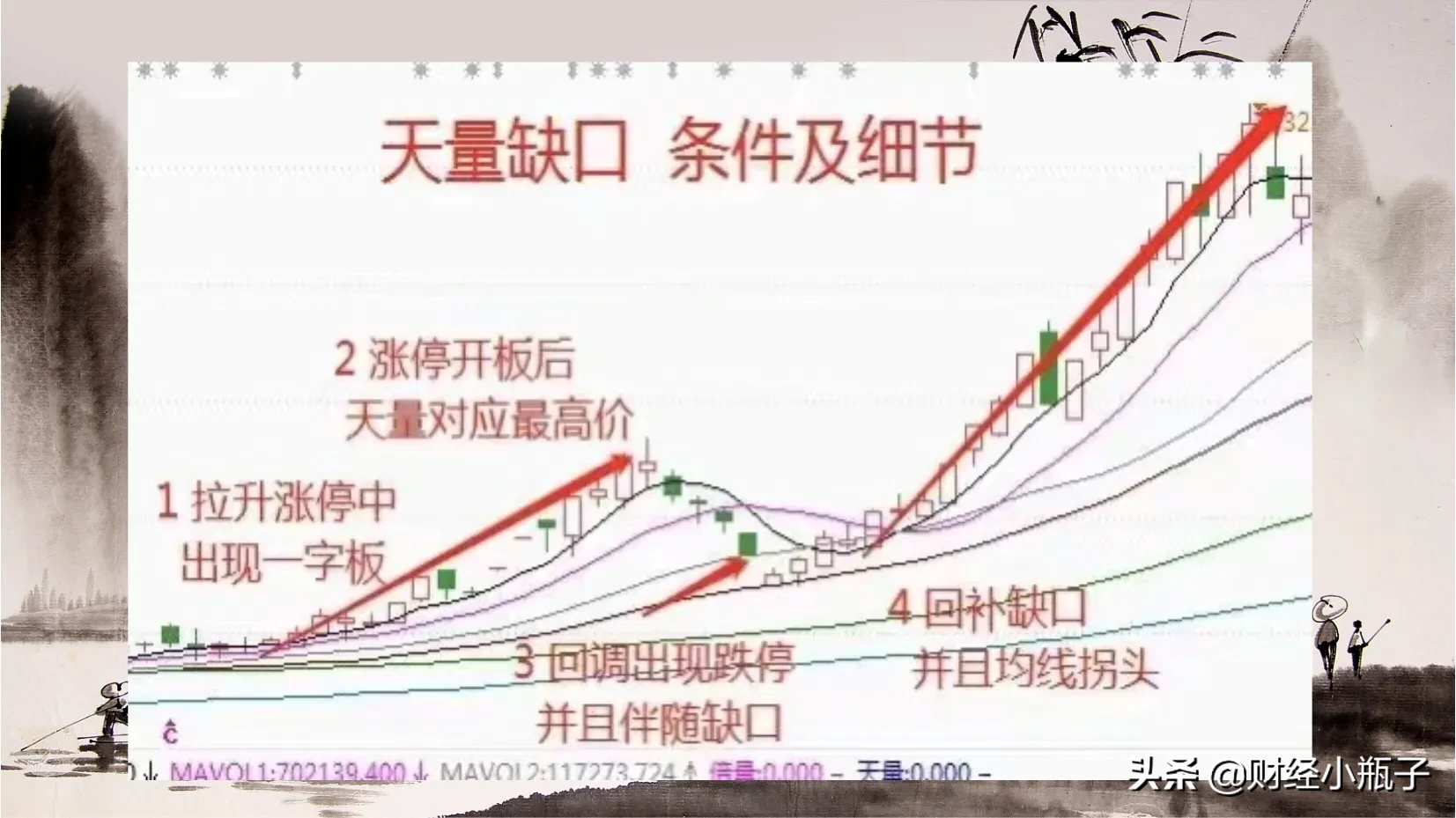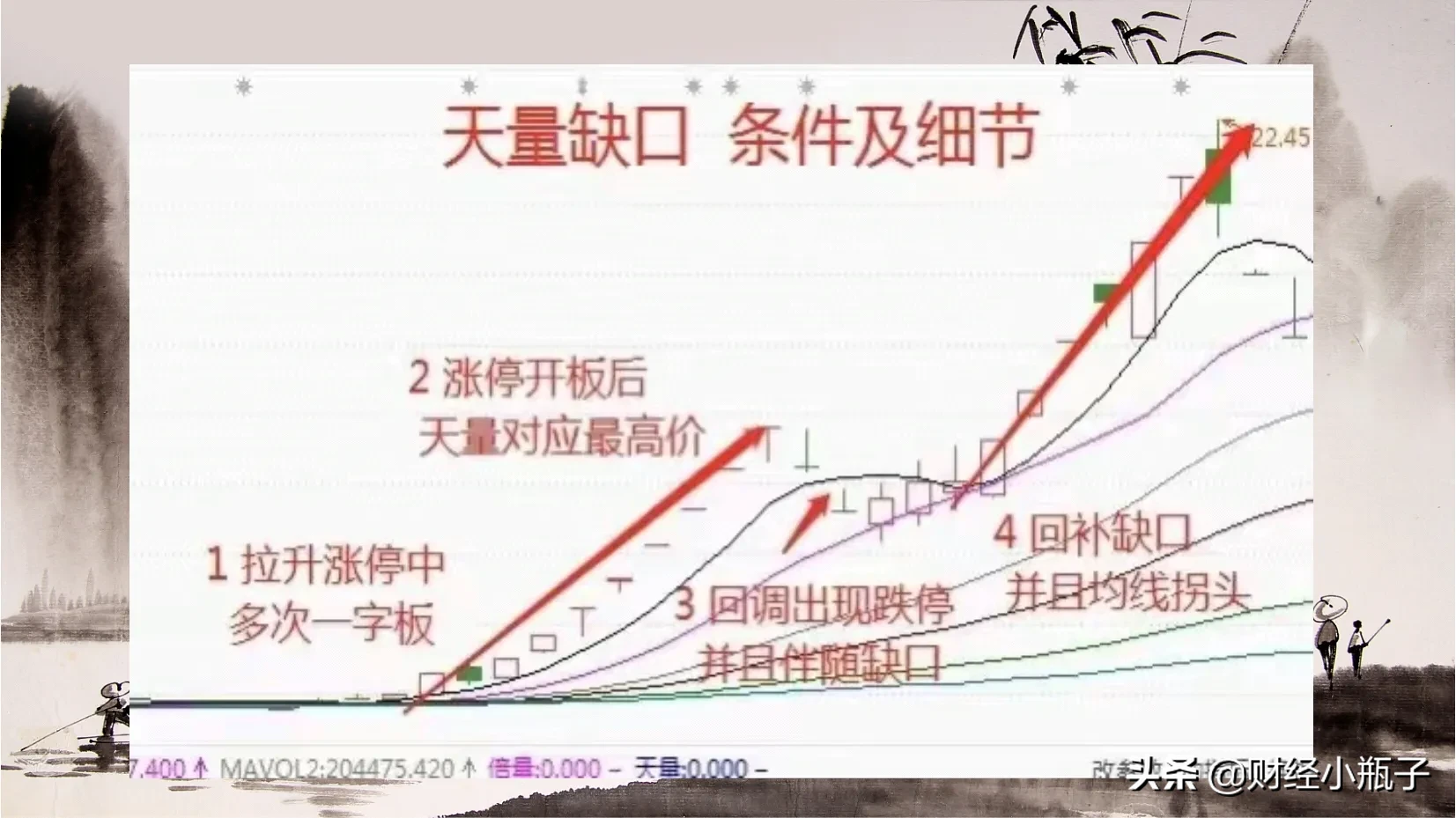 天量缺口形态就是出现的连续的一字板拉升,在股价上涨行情中,没有机会介入,当买到之后呢就被深套。但是在一字板之后,如果出现天量缺口,这个时候我们要重视起来,一旦缺口回补就是时机。一旦进场就要耐心持有,无论外界市场情绪如何都不要受影响,只需等待主力后市的强势拉升。