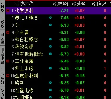 2、板块涨幅居前的为:白酒、养鸡、猪肉、食品、超级品牌、天燃气等。跌幅居前的为:化工、有色、钢铁、水泥、造纸、特高压、锂电池、煤炭等等。
