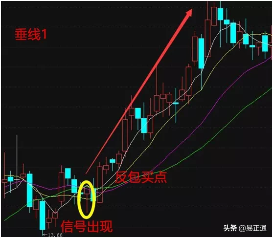 下面的图形是底部信号,比如两个小队去寻找水源,如果哪方找到了水源,朝天放信号枪,看到信号枪,就一定是对方找到了水源?有没可能是对方遇到了危险?不管是不是意外,当看到信号的时候,都要过去汇合。结合KDJ金叉,MACD背离,量价关系等使用效果更佳。