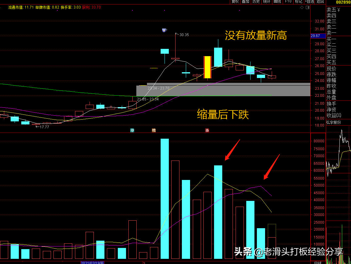 2、缩量后没有新高;
