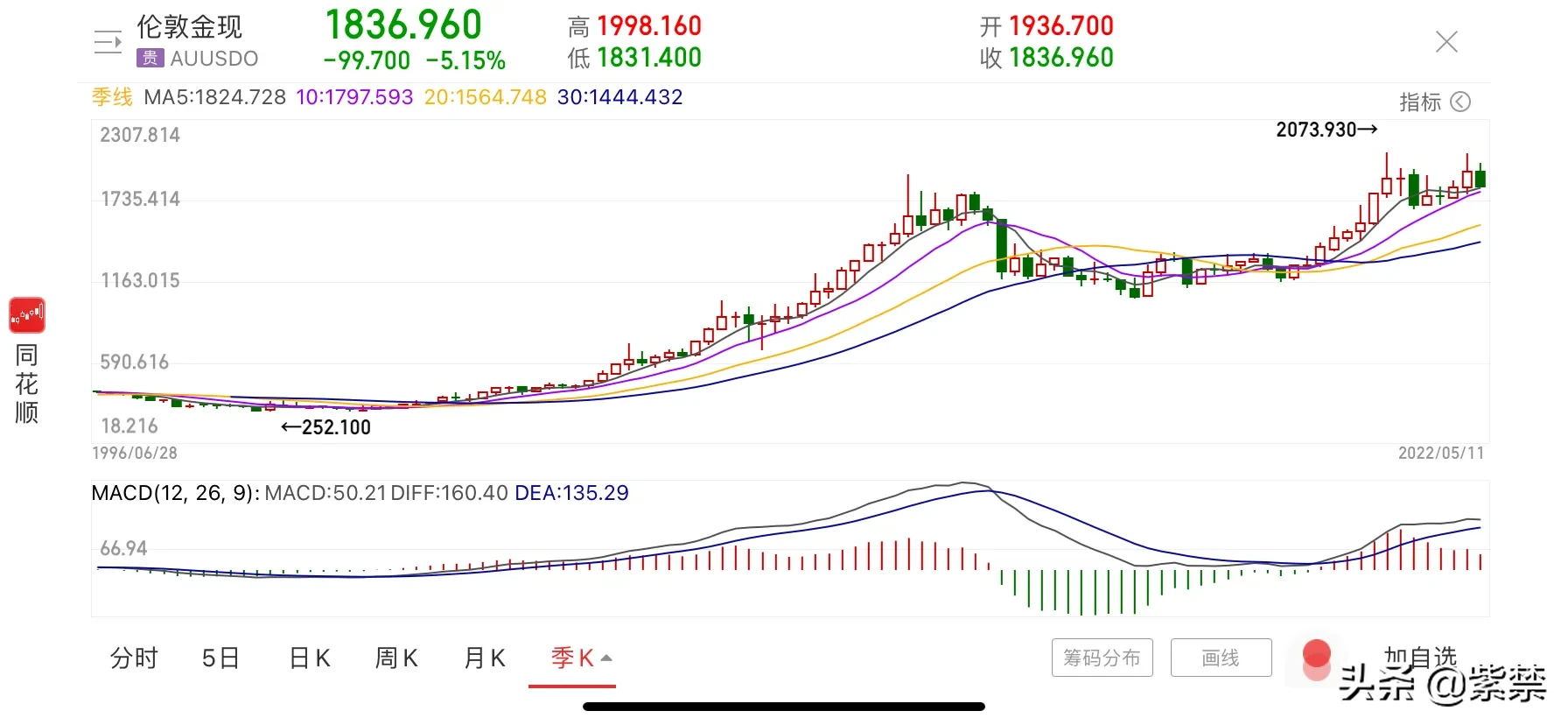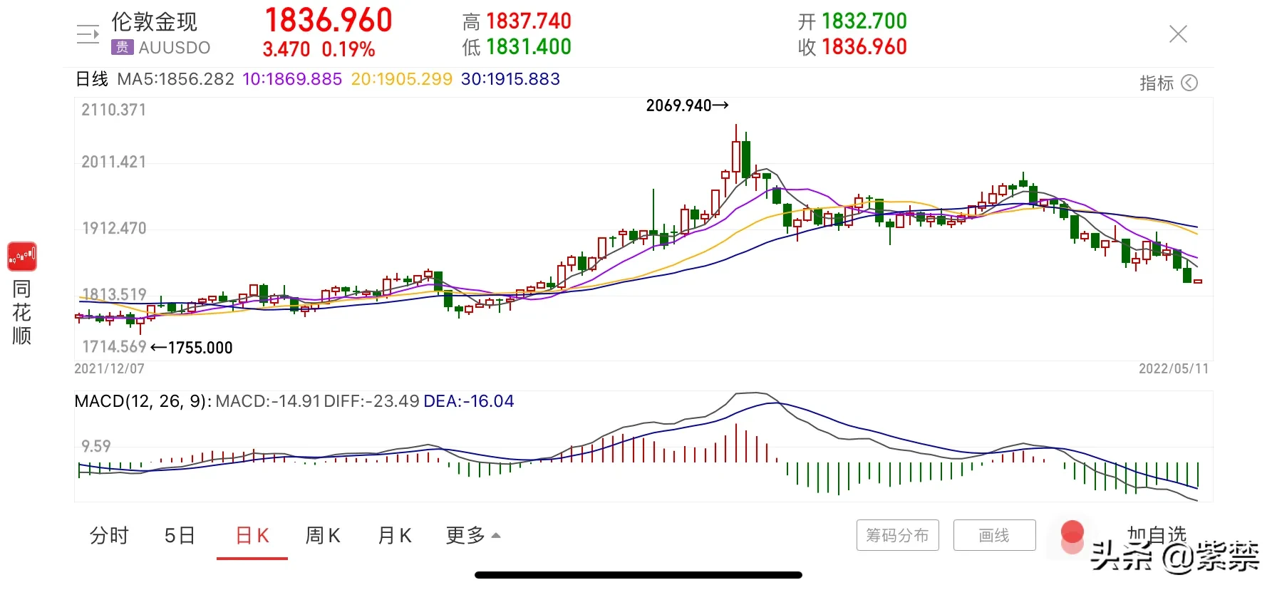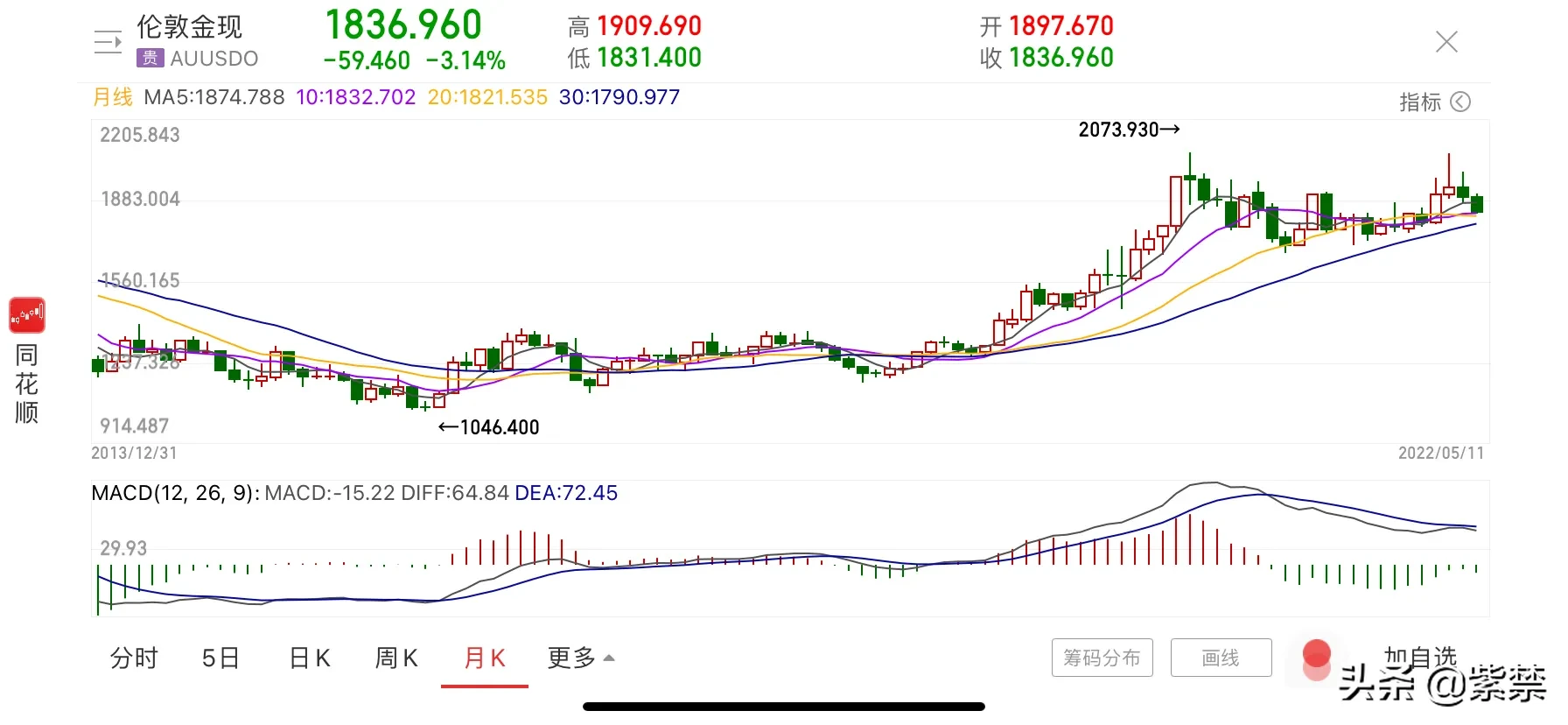 如果美联储不断加息,就不会释放新的货币,黄金其实它作为对冲风险的工具,就同样也会受到价格上的影响。从目前情况来看,黄金整体运行趋势,周线、年线、月线仍然保持着攻击势头,在1800美元附近的调整能持续多久?还有待观察!