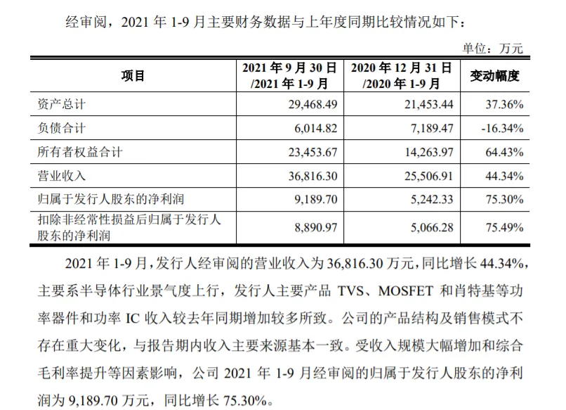 芯导科技(图2-4),科创板发行,主营功率半导体的研发销售,行业处于风口,每股收益19年1.07元、20年1.65元,21年半年1.41元,业绩增长明显,今年前三季扣非后的归母净利润增长同比75%,可以说行业利润都非常好的一家公司,不过发行价134.81元,发行市盈率高达112.96倍,相对于47倍的行业市盈率高了不是一点点,这股其实颇纠结,申购吧一百多的发行价又怕它是第二个成大生物,不申吧又可惜了一只好股,看来要到周一抛个硬币再决定了。
