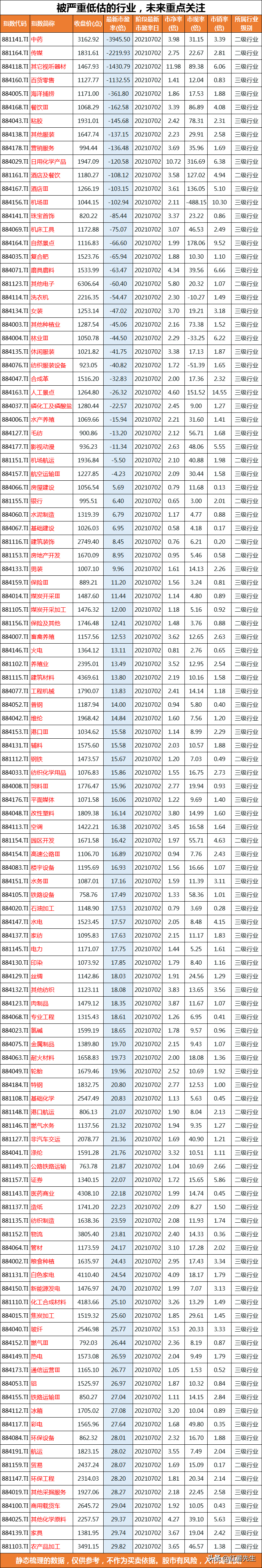 [来看我]今天本人筛选整理出了一份【市盈率<30,被严重低估的行业】,最被低估的是“中药”板块,但确实近期市场逐渐大热的新的机会。另外,还有一些受疫情影响较大的行业,比如酒店、餐饮、机场等,后续肯定是有机会的,坐等行业进入爆发期。还有一个值得关注的方向,是电力,进入暑期用电高峰期,全国碳交易市场纳入了多家电力企业。