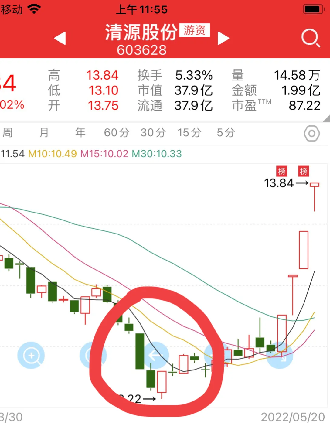 3、 “出水芙蓉”:此K线是一种大阳线穿越三条均线的形态。穿5日,10日,20日,此方法的往往是看中线的趋势,短线的操作方法。买入看回调过程大阳线的底部不得跌破,如果能够快速拉上去,用温和放量的方法上攻,表示有一个比较好预期的上涨模式已经开始。但过程中不能有跌破—5%以上的回调。